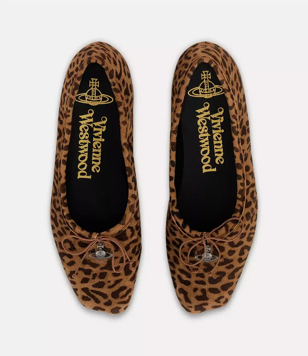 Naše balerínky Brigitte mají anatomický tvar, který připomíná charakteristický motiv „Animal Toe“ značky, poprvé představený v kolekci jaro-léto 2000 „Summertime“. Jsou vyrobeny z kůže a nabízejí se ve vintage stylu z leopardího semiše, doplněné trojrozměrným motivem koule v přední části designu.