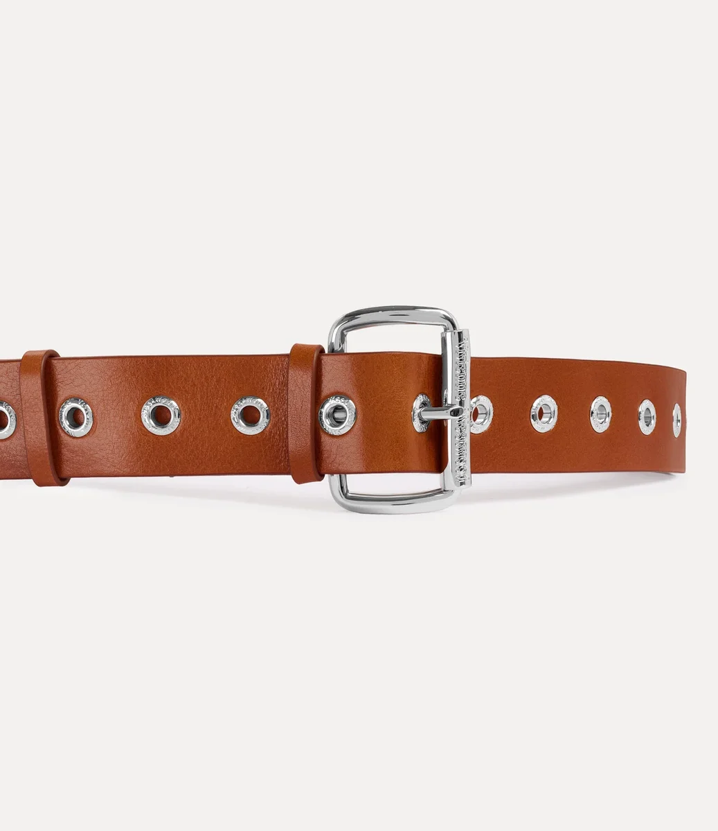 Náš bondage pásek je v této sezóně přepracován z lesklé rostlinně činěné kůže a zdobený charakteristickými stříbrnými kováními značky. Design se vyznačuje odvážnými kroužky inspirovanými bondage, které čerpají inspiraci z kolekce Vivienne Westwood jaro-léto 1995 „Erotic Zones“.