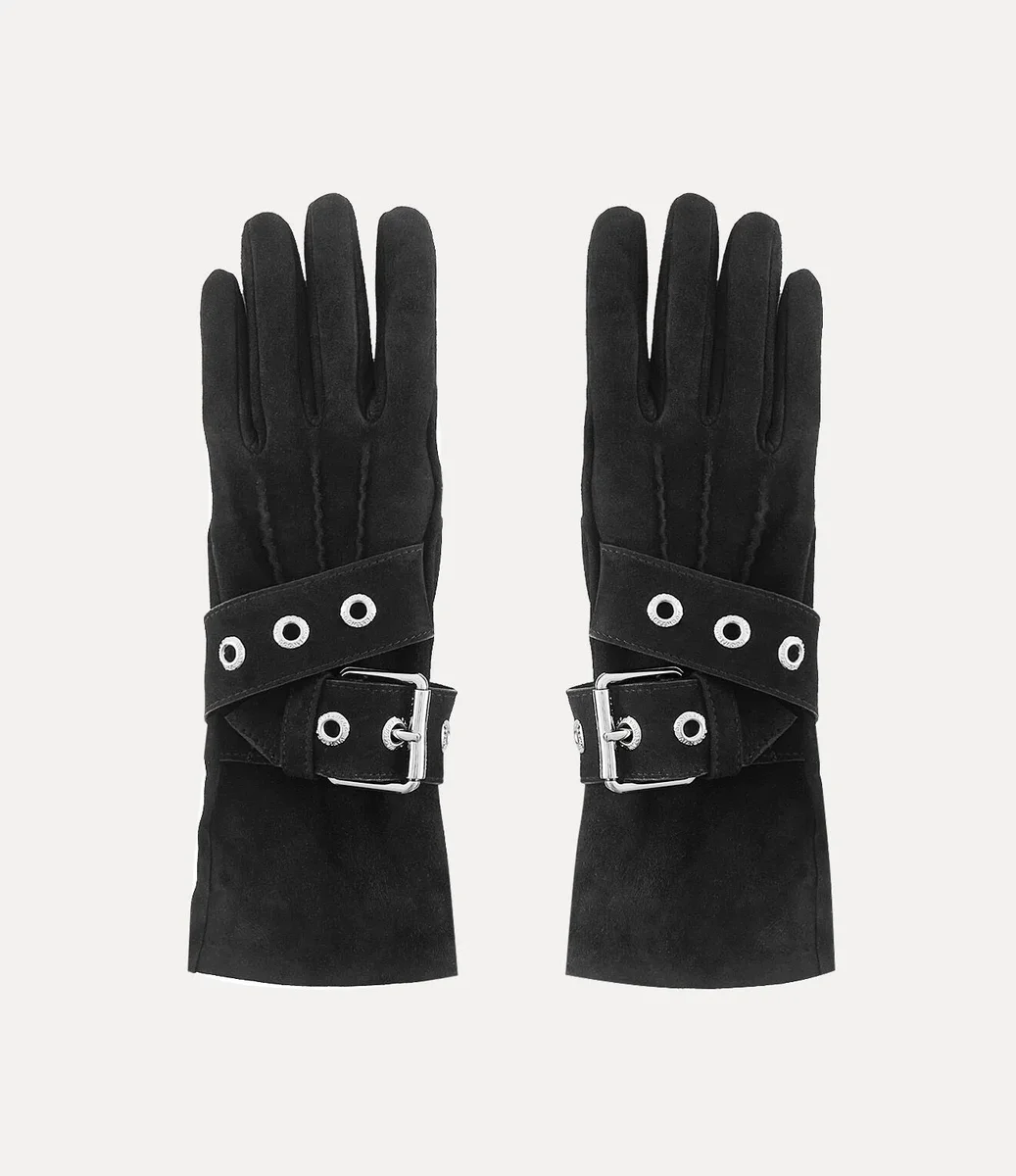 Naše rukavice Belt Buckle jsou vyrobeny z měkké semišové kůže a mají prodlouženou manžetu, která sahá až za zápěstí. Design, inspirovaný charakteristickým páskem Alex značky, je zdoben asymetrickým páskem, který se diagonálně ovíjí kolem každé rukavice, a je zakončen vygravírovanými stříbrnými kováními.