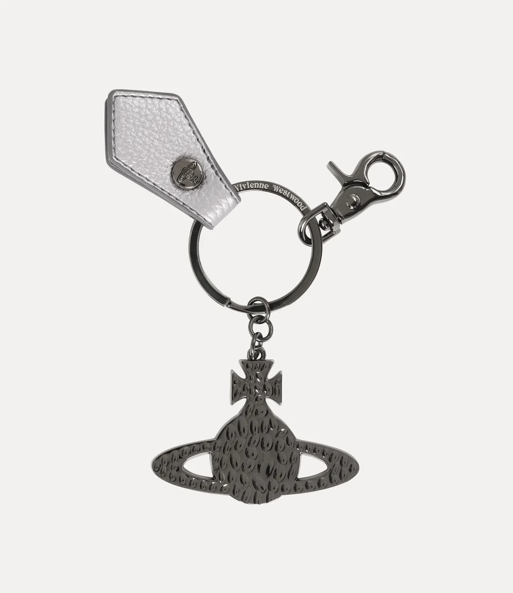 Náš klíčenka Hammered Orb nabízí dvourozměrný motiv koule s výraznou tepanou texturou, která odráží étos značky spojující minulost s budoucností. Je zakončena koženým profilovým přívěskem z PU kůže a zdobena kovovými detaily v barvě gunmetal.