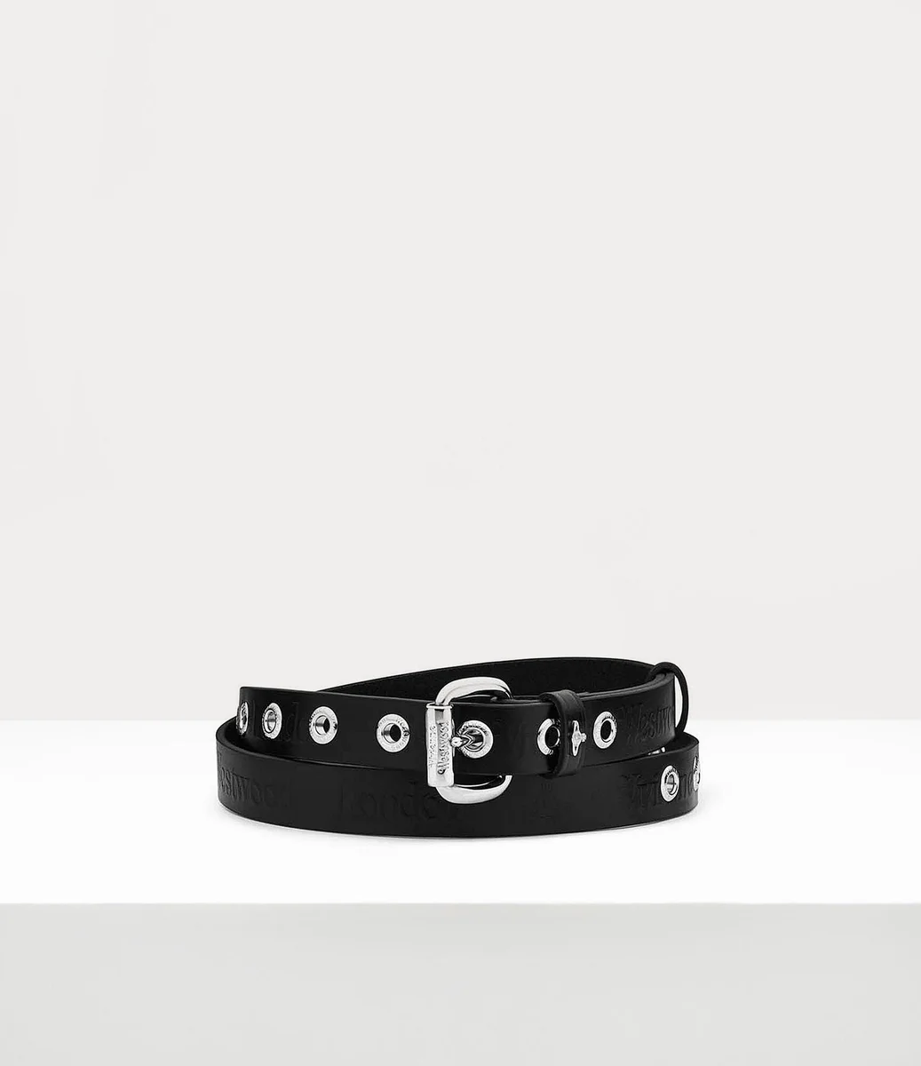 Náš opasek Carolina z měkké černé kůže má leštěné kovové očka a štíhlý střih. Spona je vygravírována písmenem Vivienne Westwood, zatímco opasková smyčka nese vyražené logo orb, symbol, který je nedílnou součástí naší tradice.