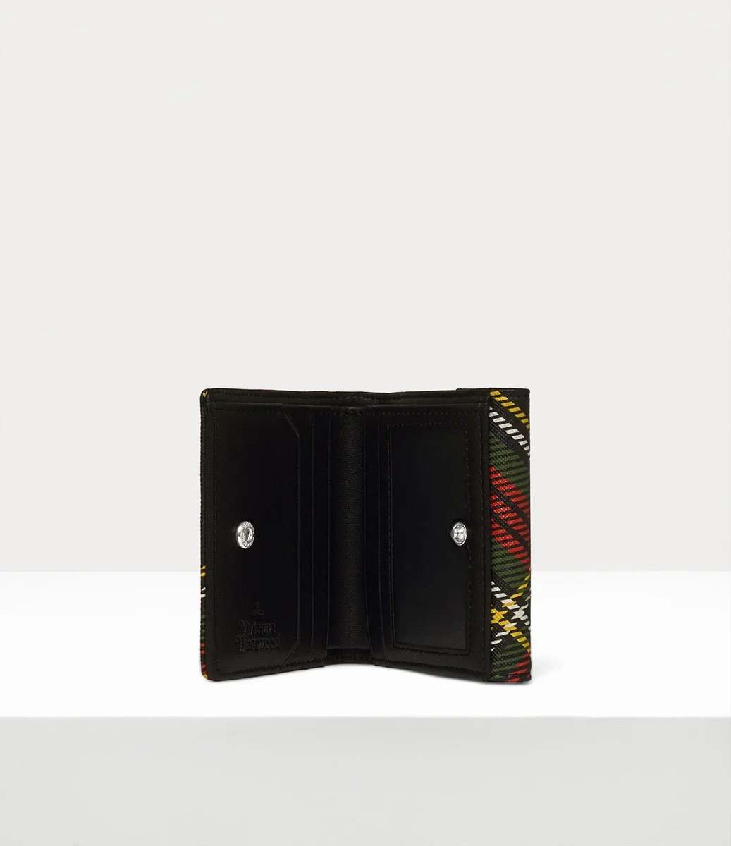 Naše malá peněženka je v této sezóně přepracována s tartanovým motivem „Chelsea“, doplněným tlumenými tóny a klasickými stříbrnými kováními. Kousek zdobí charakteristický motiv „Line Orb“, který zachycuje Vivienninu vizi přenesení tradice do budoucnosti.