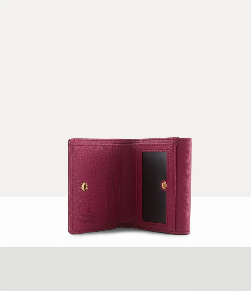 Naše malá peněženka má elegantní design se dvěma přehyby, je vyrobena z PU kůže a vyznačuje se křížovou saffiano texturou. Přední klopou zdobí ikonické logo značky v podobě koule ze zlatého kovu, které je umístěno nad leštěným zapínáním na druk, zatímco vnitřní panel zdobí jemné vyražené logo.