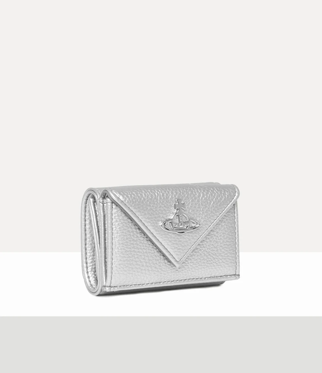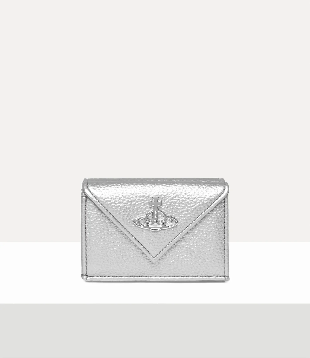 Naše peněženka Envelope má stříbrnou siluetu z PU, vyraženou v povrchové úpravě s efektem zrnitosti, která je typická pro tuto sezónu. Design nabízí charakteristický kovový motiv „Line Orb“ na zapínání na patentku, který ztělesňuje vizi Vivienne Westwoodové o přenesení tradice do budoucnosti.