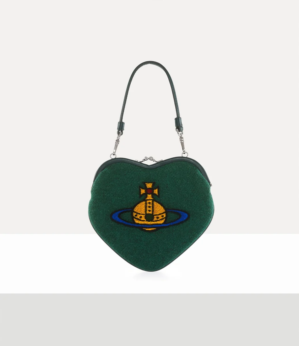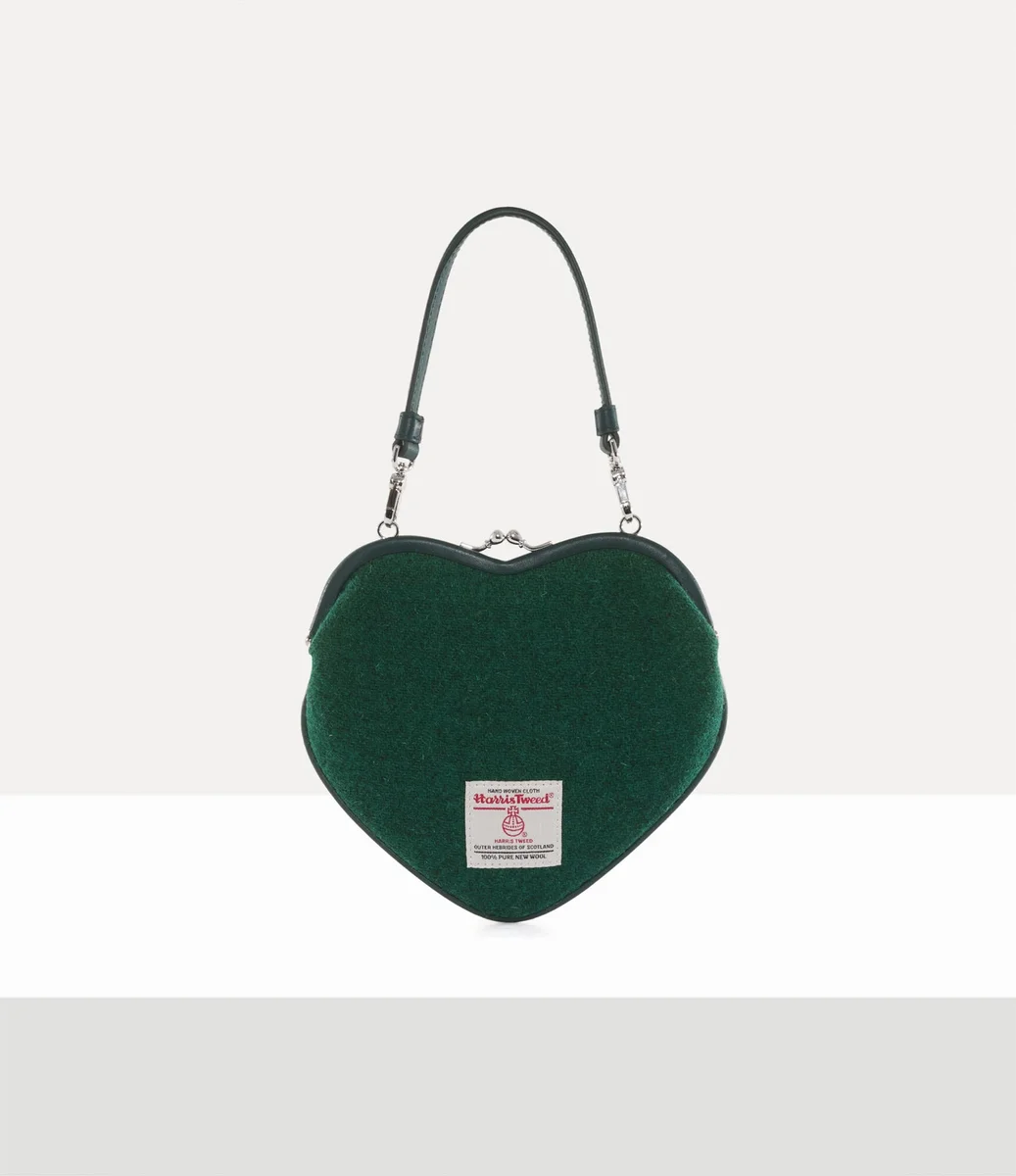 Kabelka Belle Heart Frame se v této sezóně vrací v jednobarevné vlně, která je odborně melírovaná, aby odrážela charakteristickou texturu Harris Tweed. Má klasický tvar srdce a je zdobena ikonickým vícebarevným motivem koulí, který je v této sezóně nově interpretován v čalouněném provedení.