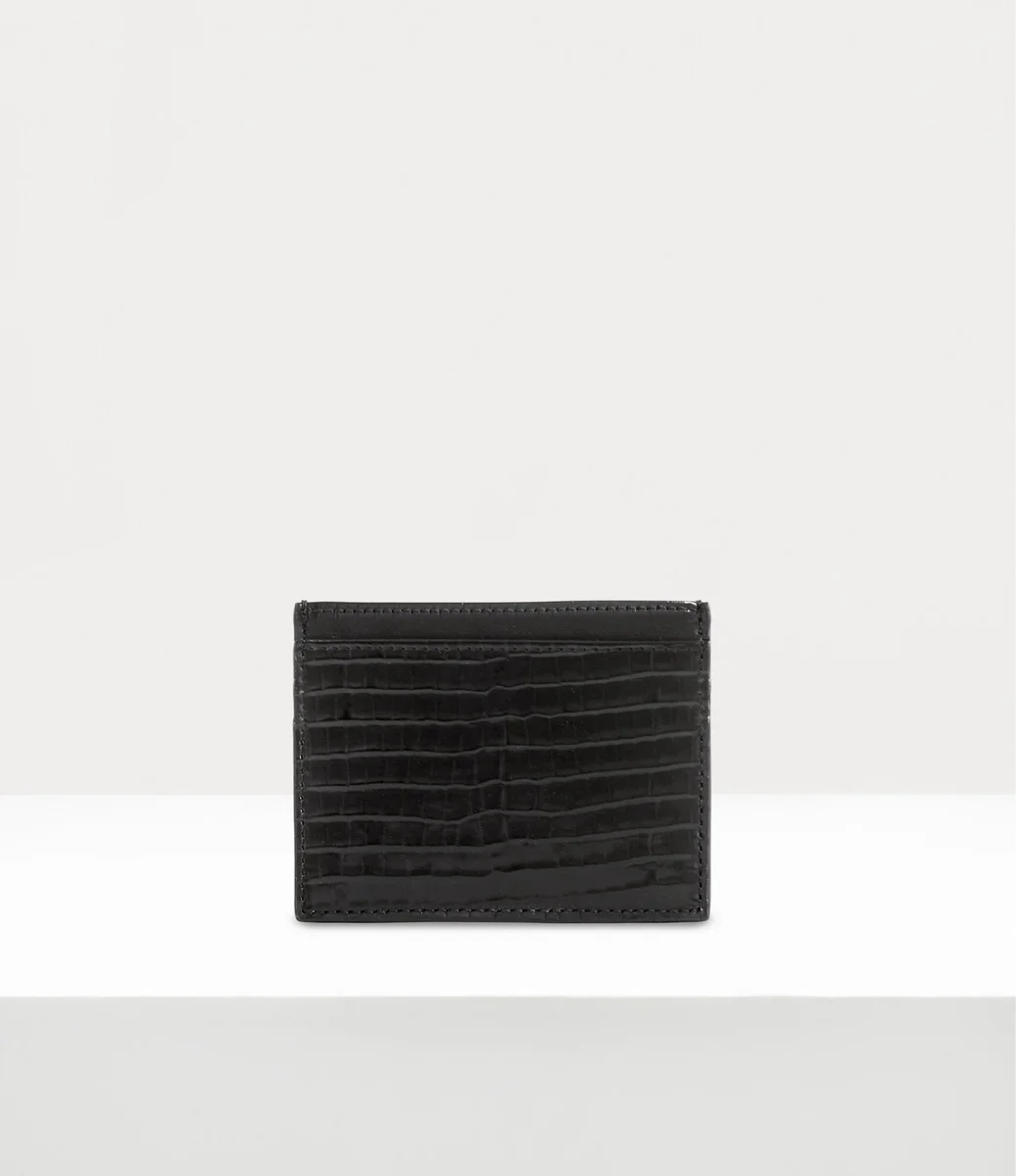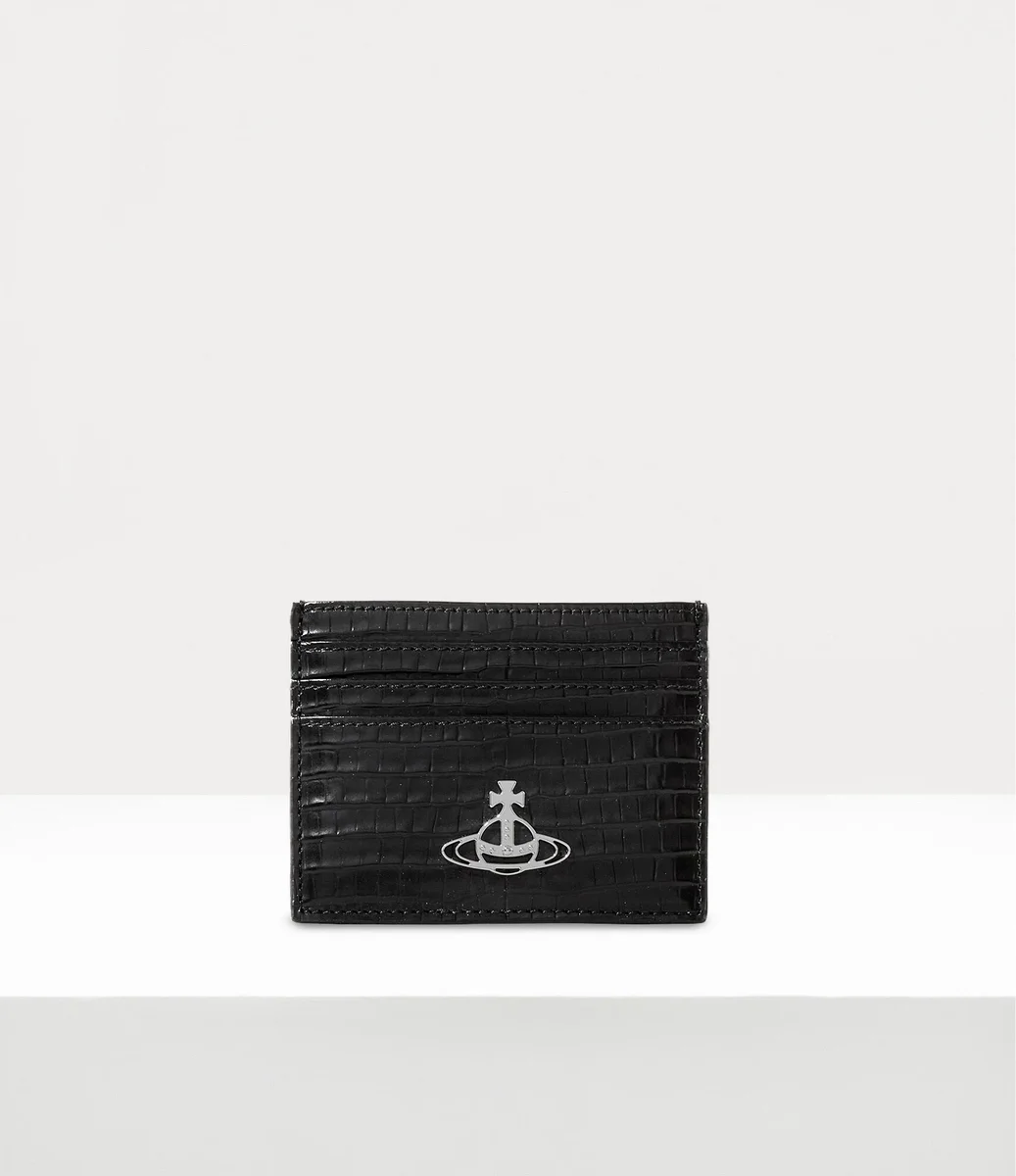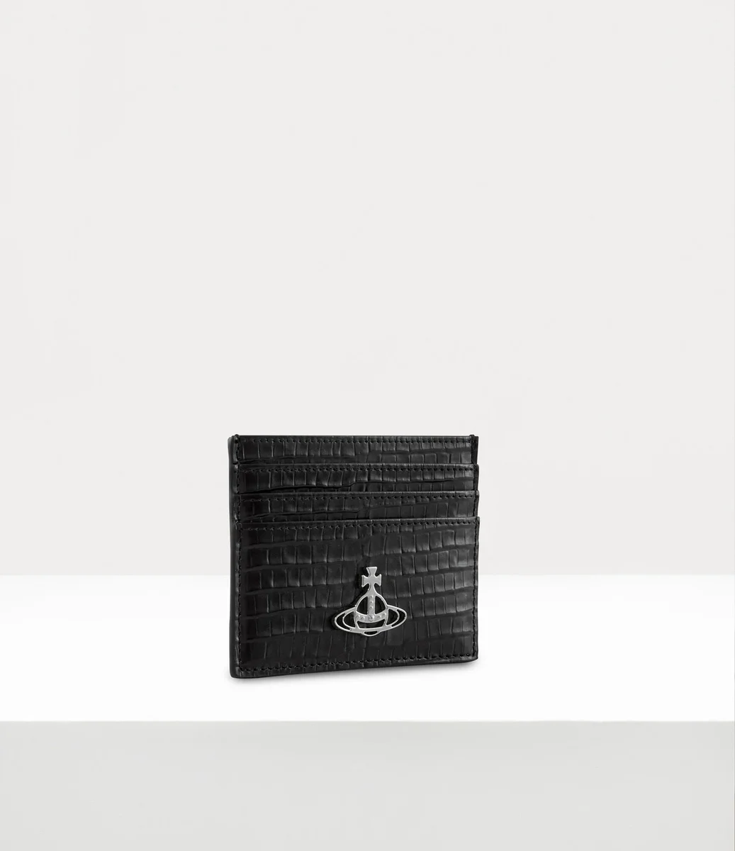 Plochý držák na karty Vivienne Westwood má reliéfní povrch s efektem krokodýlí kůže, doplněný motivem „Line Orb“ a přihrádkami na karty po obou stranách.