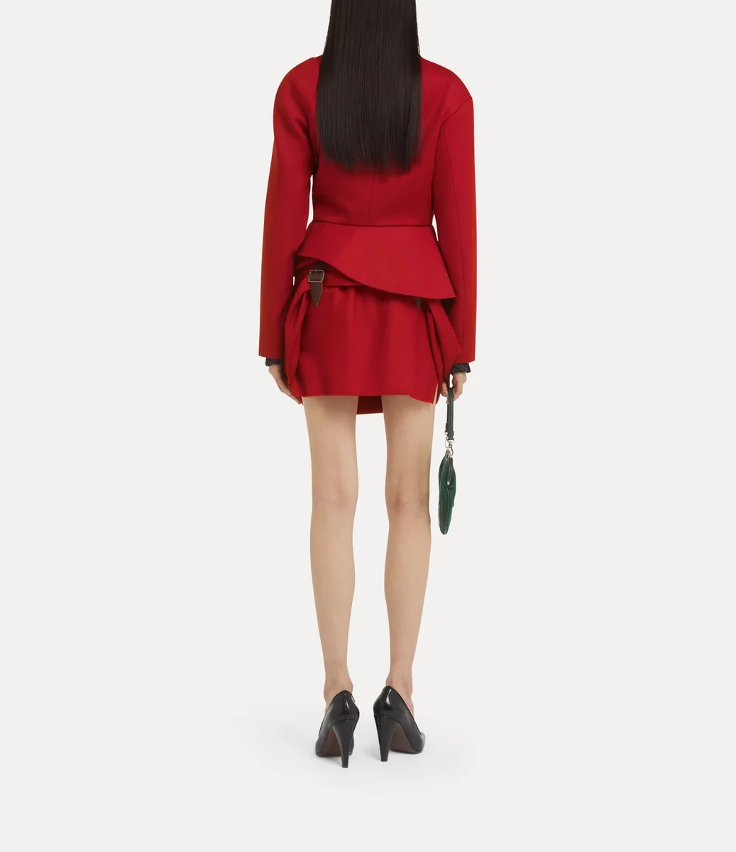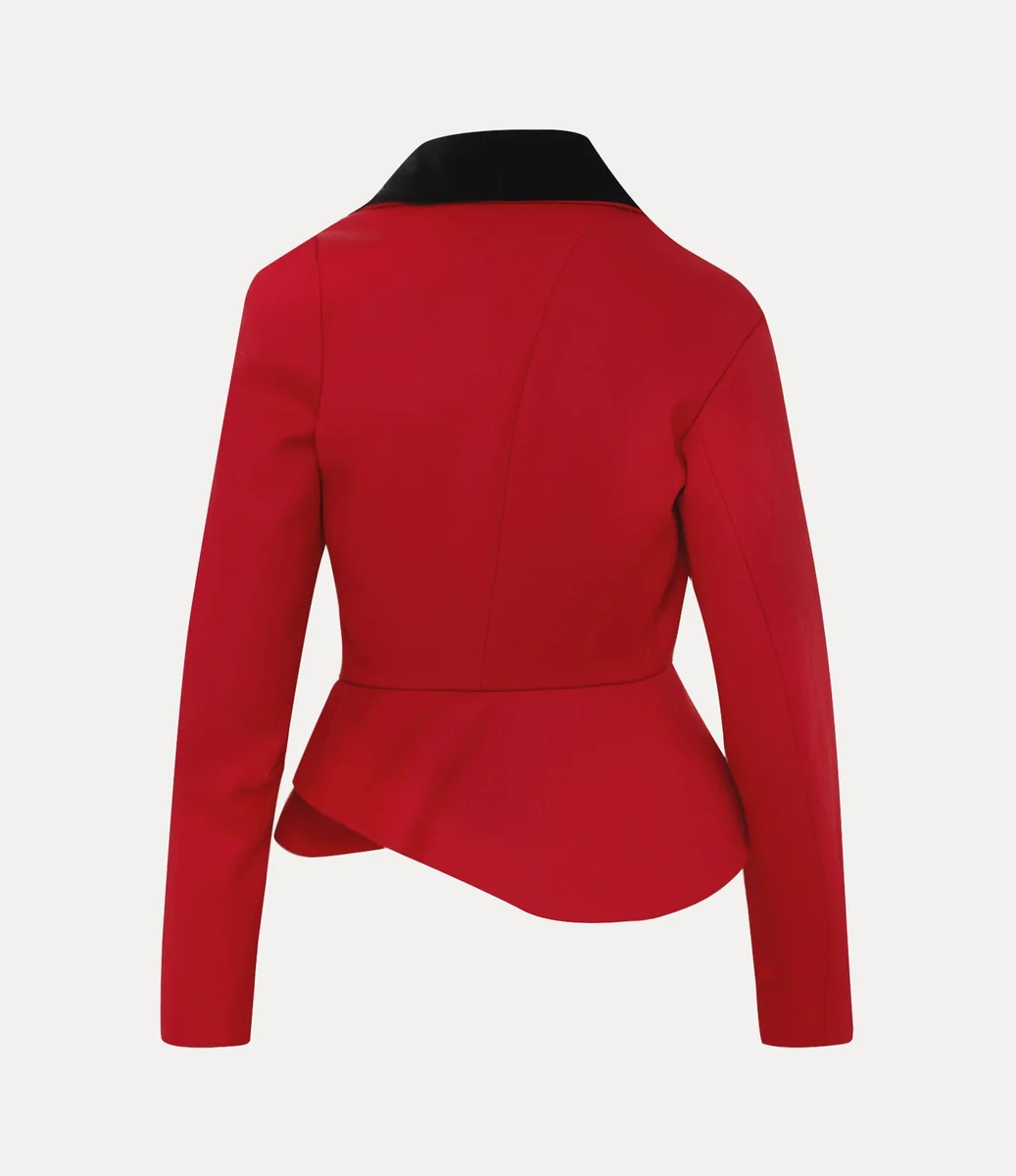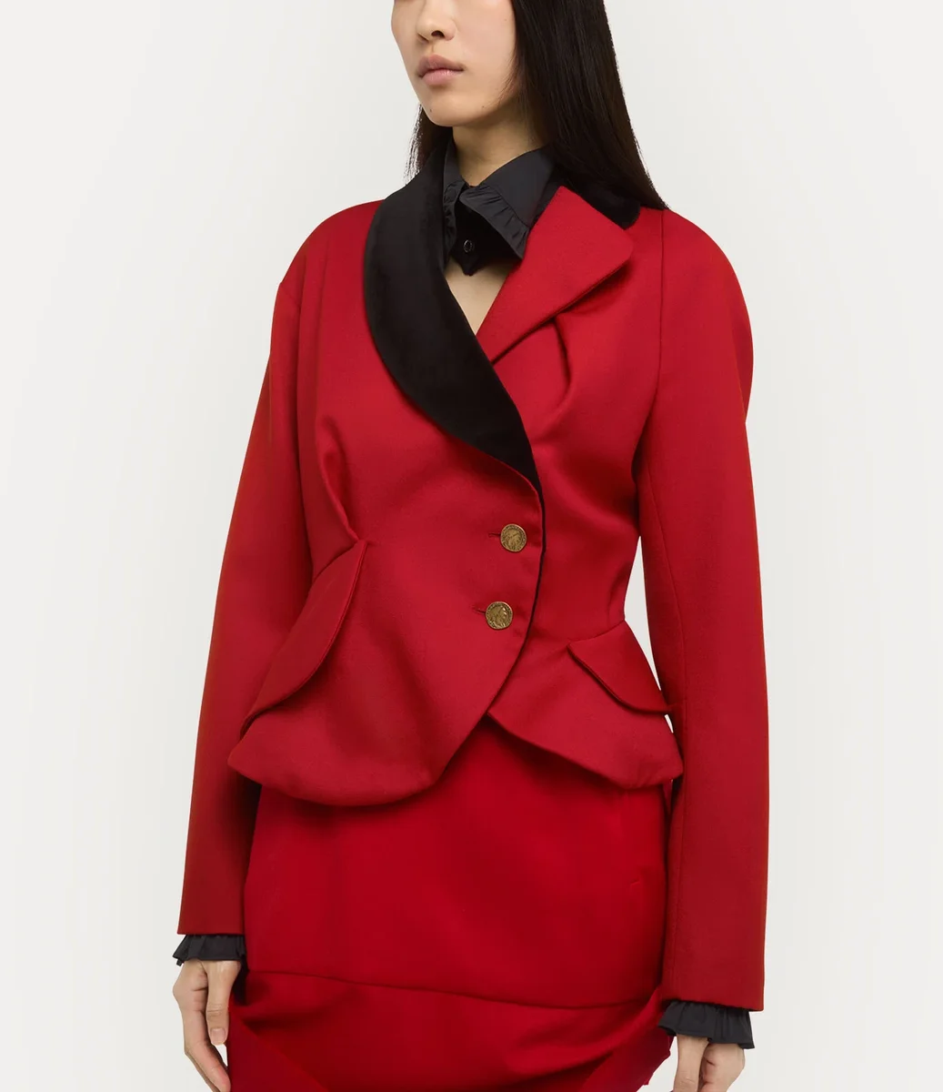 Naše bunda Stormy je vyrobena z měkké vlny a má kontrastní černý šálový límec a asymetrické zapínání vpředu se dvěma zlatými reliéfními knoflíky. Jemné záševky tvarují pas a plynule přecházejí do tvarovaného peplumového lemu.