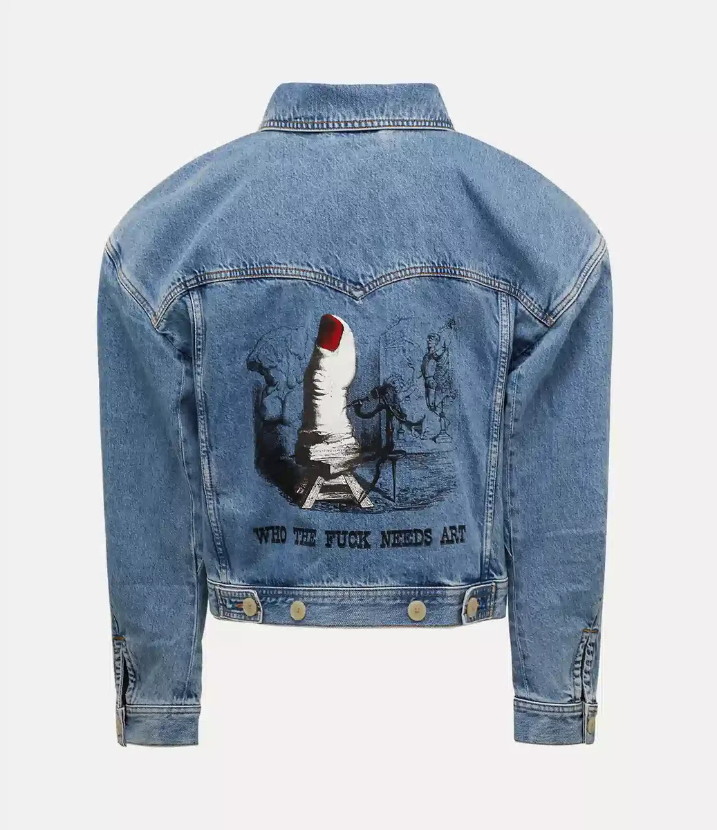 Naše bunda Worlds End Denim Boxer má sportovní střih s nadměrnými kapsami a sníženými ramenními švy. Na zadní straně je potisk s archivním sloganem značky „Who the Fuck Needs Art“ z kolekce „Propaganda“ Vivienne Westwood z jara/léta 2006, který odráží její punkové kořeny a odhodlání zpochybňovat politické konvence.