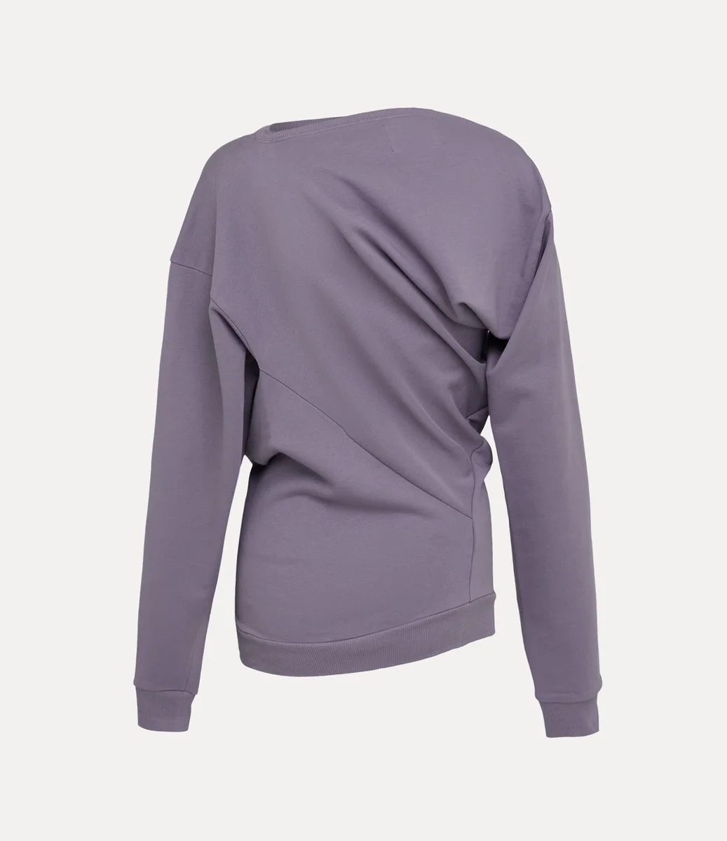 Silueta Hebo se v této sezóně vrací v rafinovaném designu svetru s výstřihem do V inspirovaným šikmým střihem a volnými spadlými rameny. Kousek přechází do rukávů s žebrovanými manžetami a je doplněn jemným diagonálním švem přes záda, který zdůrazňuje asymetrický střih.