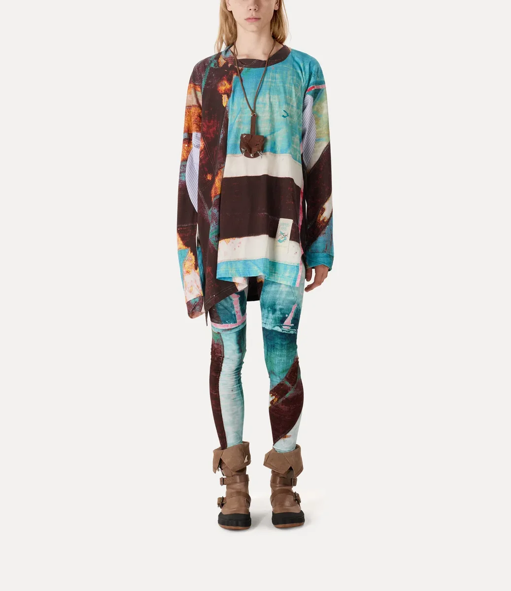 Top Worlds End Drunken je vyroben z měkké bavlněné jersey a zdobí ho zářivý vícebarevný potisk této sezóny. Má dlouhé rukávy a asymetrický střih, detaily v podobě zkroucených švů u výstřihu a manžet a archivní výšivku „Arm and Cutlass“ na hrudi.