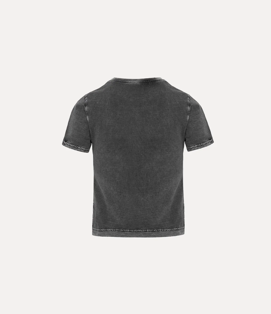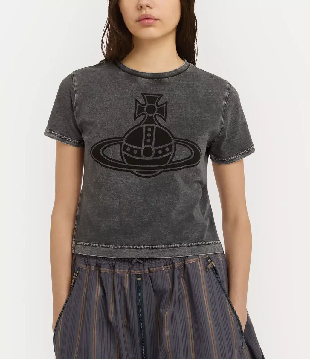 Naše tričko Paris Orb Mini Peru je vyrobeno z lehké bavlněné jersey, má zkrácený střih s klasickým kulatým výstřihem, který přechází v asymetrický stupňovitý lem. Ozdobené motivem orb značky, odráží vizi Vivienne Westwoodové o přenesení tradice do budoucnosti.