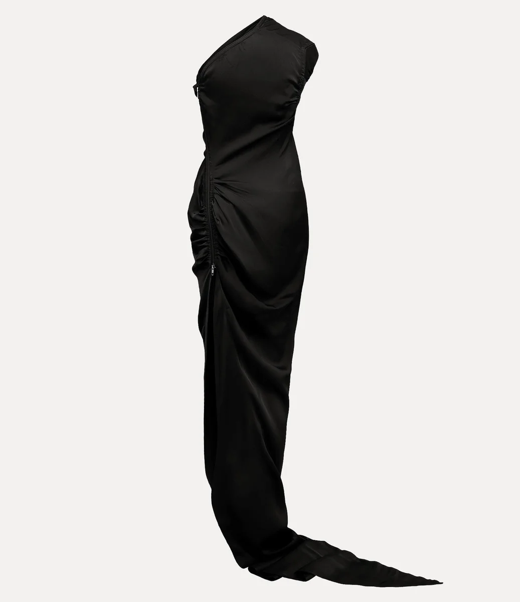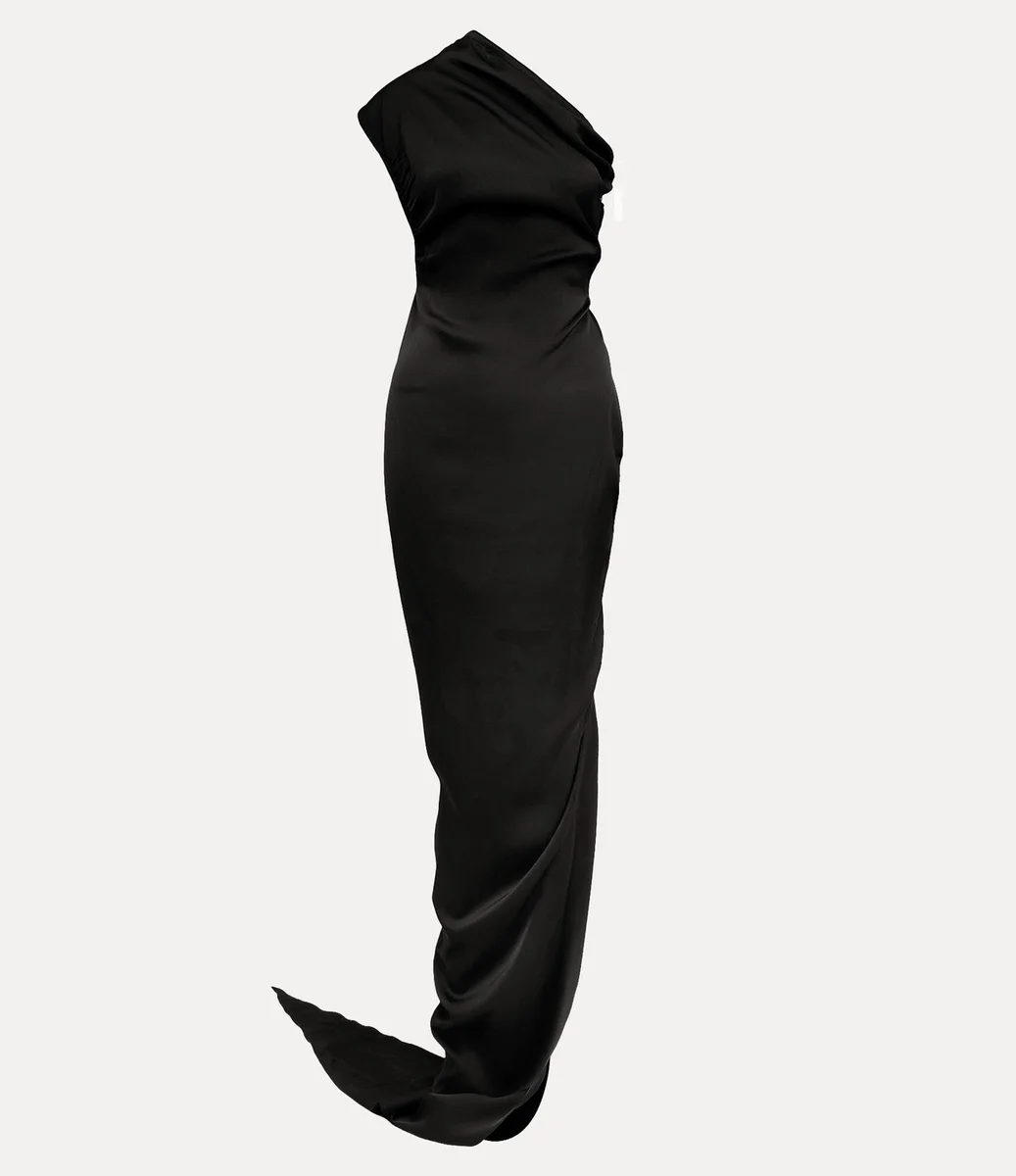 Naše šaty Andreas se vyznačují širokým výstřihem přes jedno rameno, který tvaruje postavu díky přiléhavému živůtku a jemným záševkům, které kopírují siluetu. Po stranách jemné řasení shromažďuje látku do měkkého drapování, které přechází v elegantní vlečku.