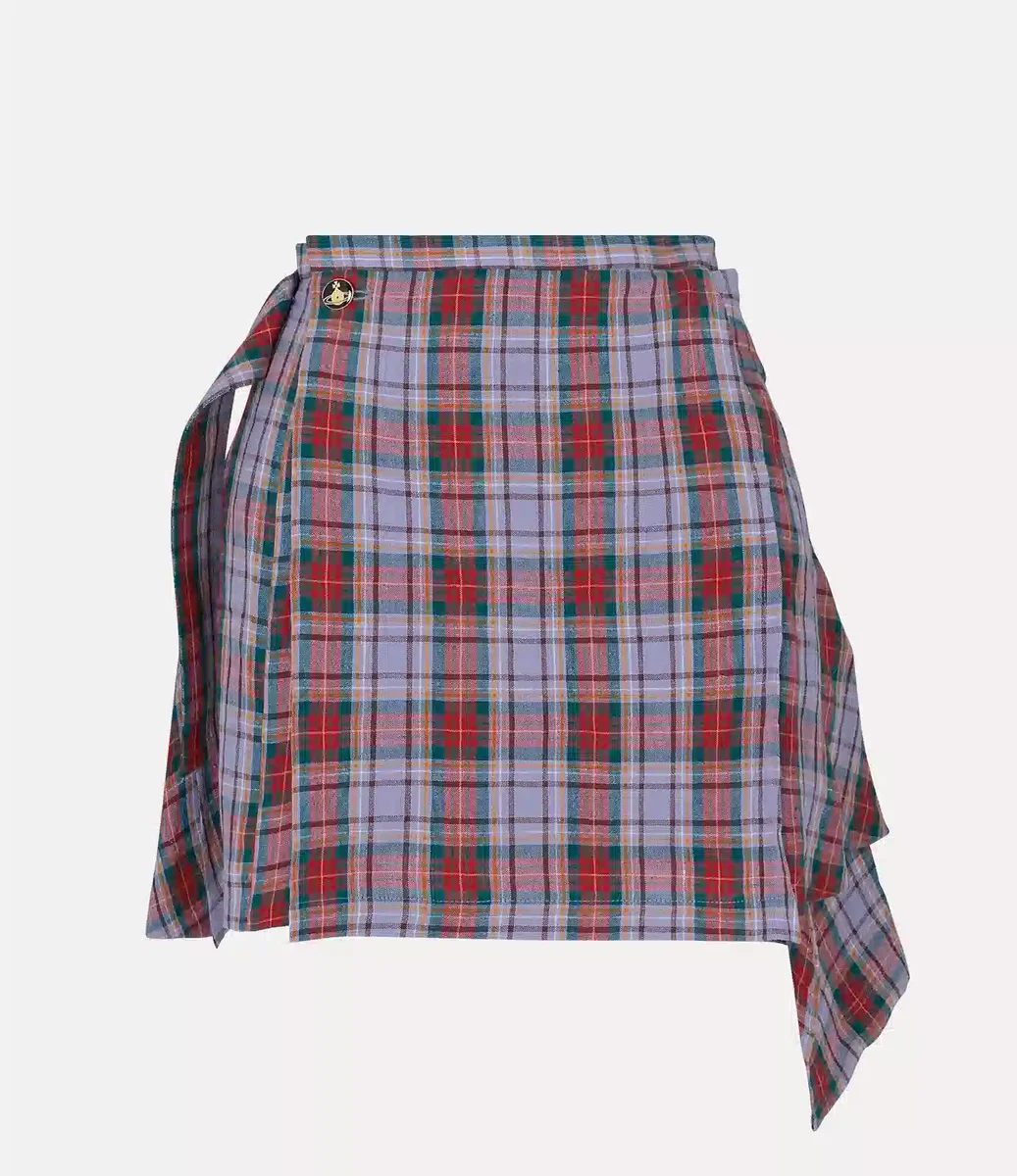 Náš kilt Meghan je v této sezóně přepracován s odvážným motivem „Louth Tartan“, tkaným v červených, zelených a fialových odstínech. Je navržen s vysokým pasem a zapínáním na ručně malovaný knoflík ve tvaru koule. Doplňuje ho ozdobný pásek, který lze nosit volně nebo připevnit na pravou stranu.