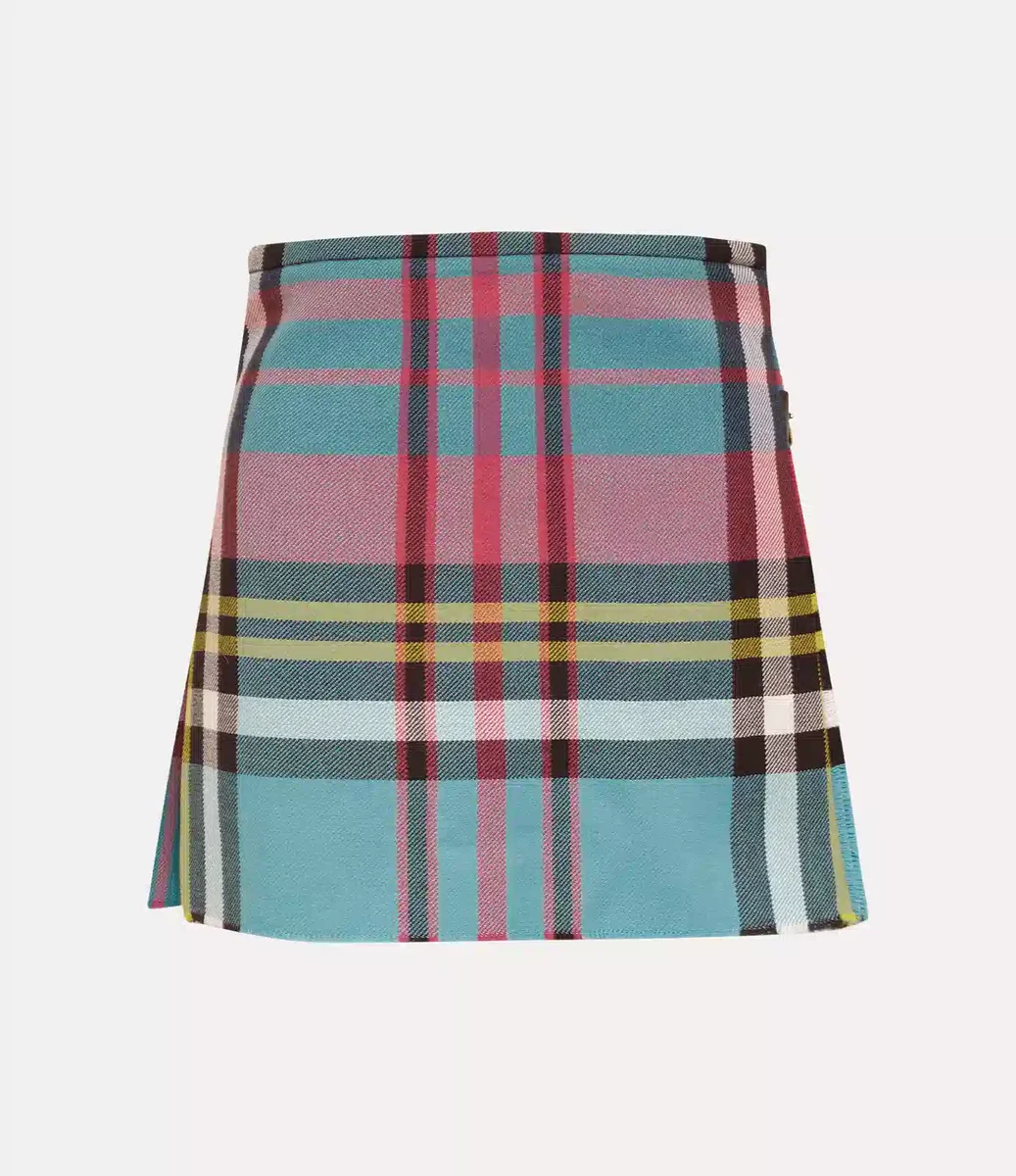 Mini kilt Worlds End nabízí zvětšenou verzi ikonického tartanového motivu „MacAndreas“, který byl poprvé představen v kolekci Vivienne Westwood podzim-zima 1993 „Anglomania“. Tento kousek má vysoký pas, který přechází do plisovaného zakončení, a je zdoben nastavitelnými přezkami na obou stranách.