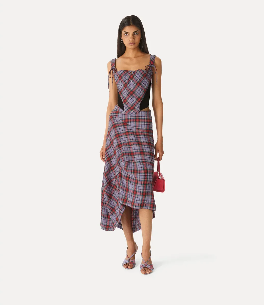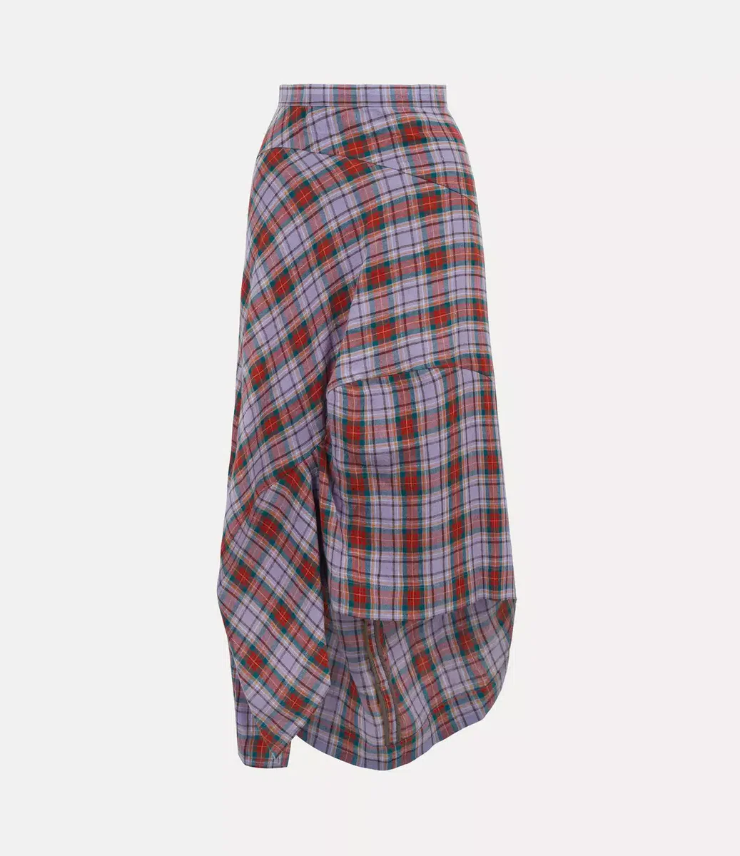 Sukně Vivienne Westwood Aeroplane je zdobena výrazným kostkovaným motivem z lnu a má vysoký pas.