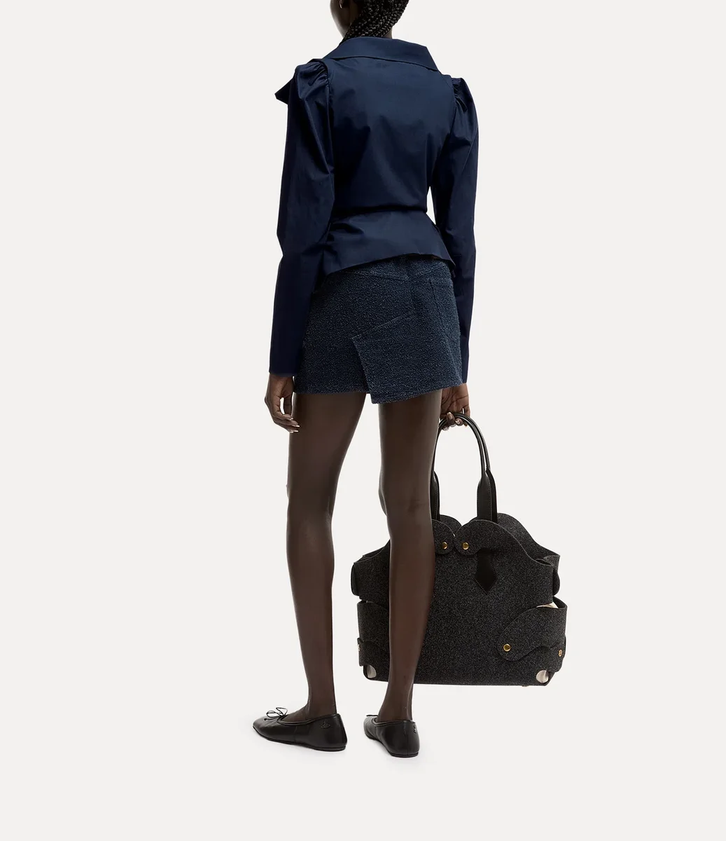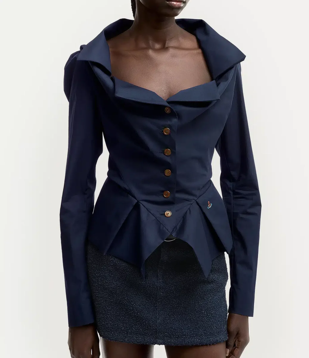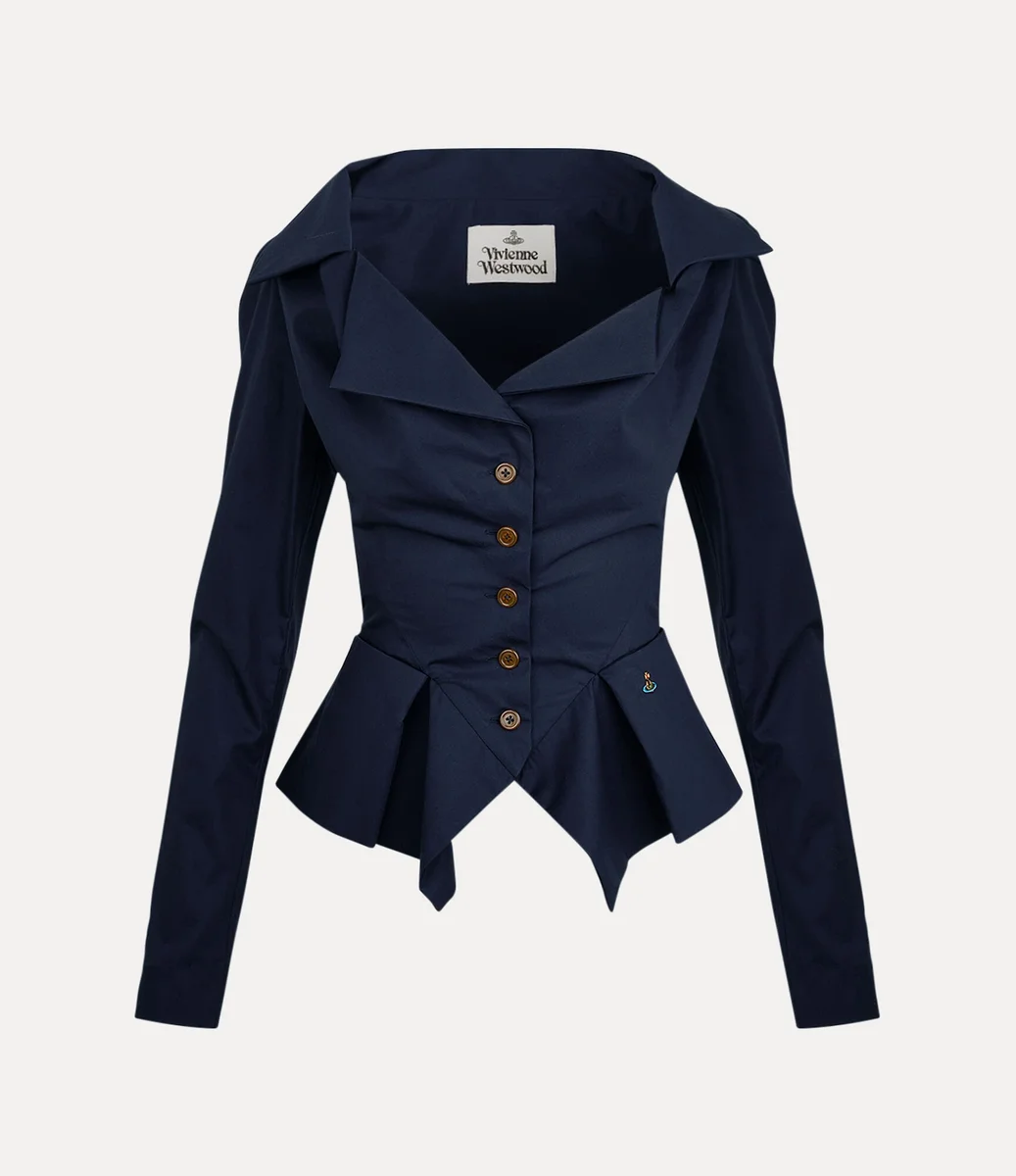 Naše košile Monday má kolem výstřihu origami-podobné záhyby látky, zdobené knoflíky s vyrytými písmeny a naší charakteristickou vícebarevnou výšivkou na boku. Kousek má přiléhavý živůtek s rozšiřujícím se, plisovaným prodloužením látky v pase a elegantními nafouknutými rameny.