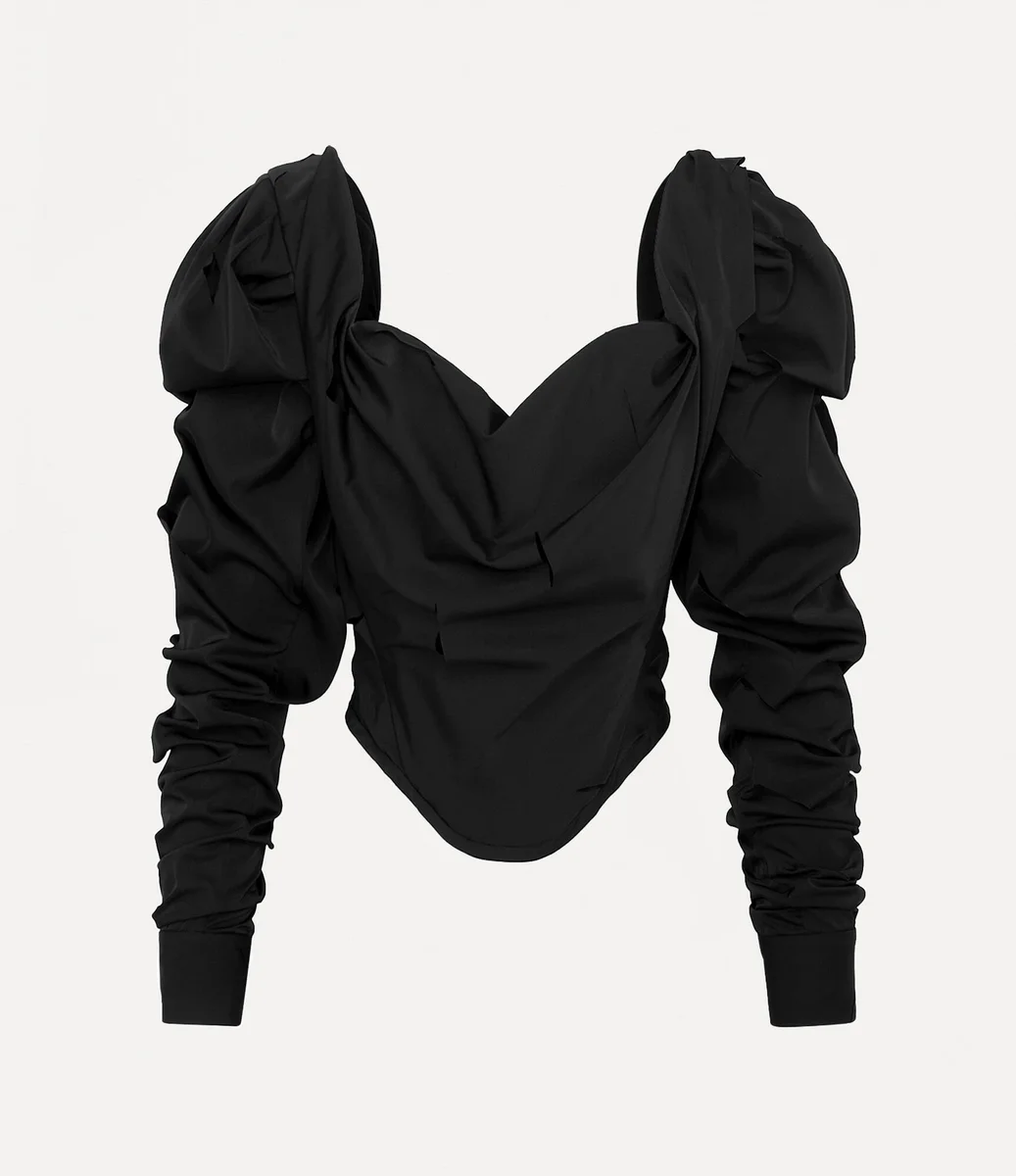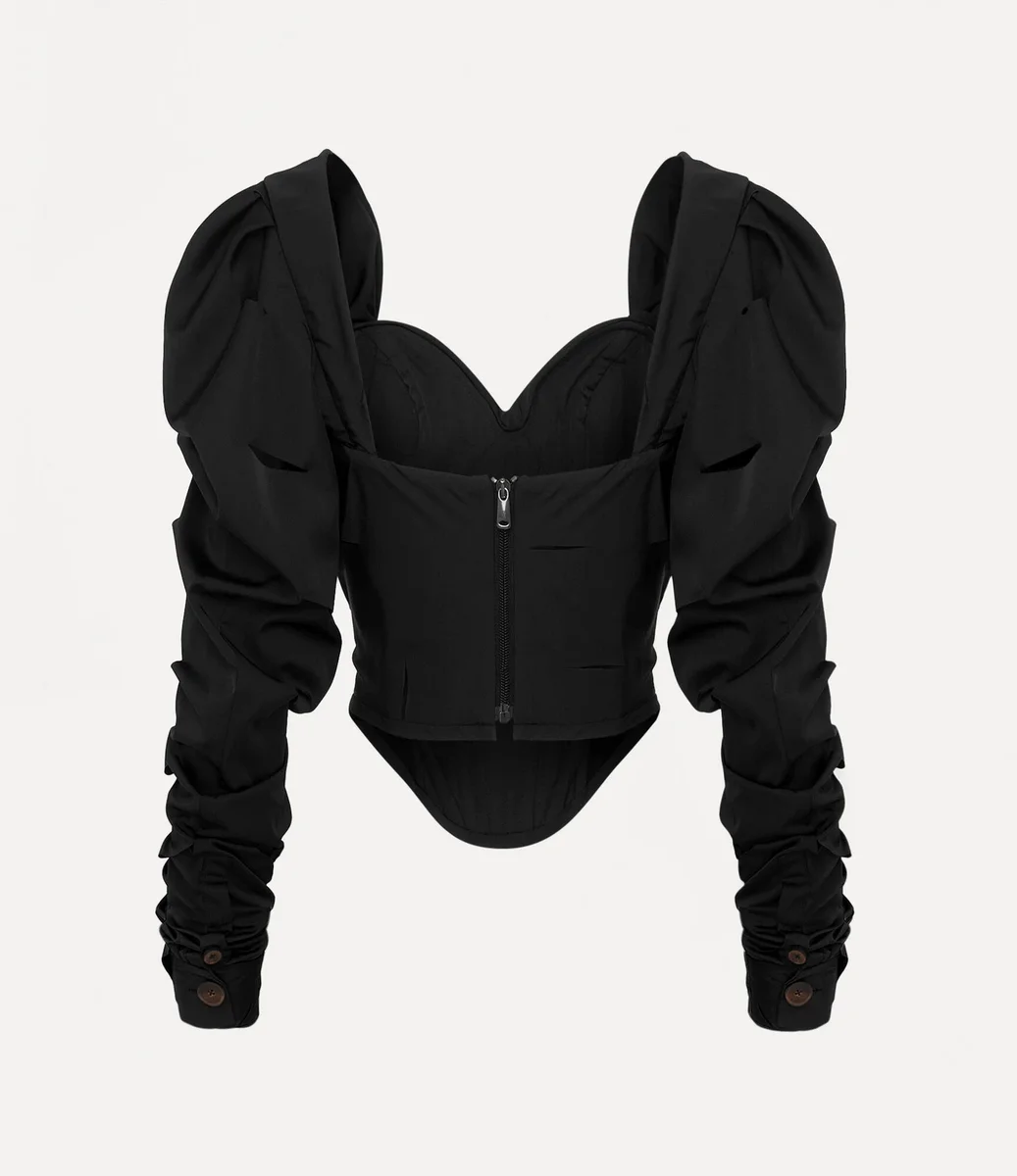 Naše korzetová halenka LS Sunday je vyrobena z bohatě barveného taftu a zdobí ji jemný laserem vyřezávaný vzor inspirovaný uměleckými díly z přehlídky Andrease Kronthalera pro podzim/zimu 2024–2025. Kousek má tvarovaný korzetový živůtek a na zadní straně je zakončen zipem s vygravírovanou koulí.