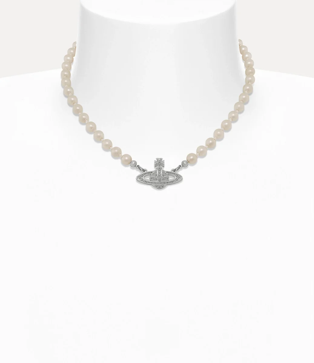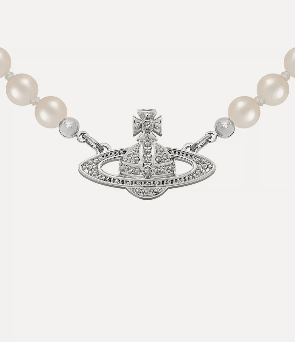 Na konci 80. let představila Vivienne Westwood svůj ikonický koncept perel na módní přehlídce Harris Tweed Fall 1987, kde představila jednřadý náhrdelník. Náš náhrdelník Mini Bas Relief Pearl čerpá inspiraci z tohoto originálního designu a přetváří jej s klasickým motivem koule uprostřed, zdobeným třpytivými krystaly, které připomínají étos značky spojující minulost s budoucností.
