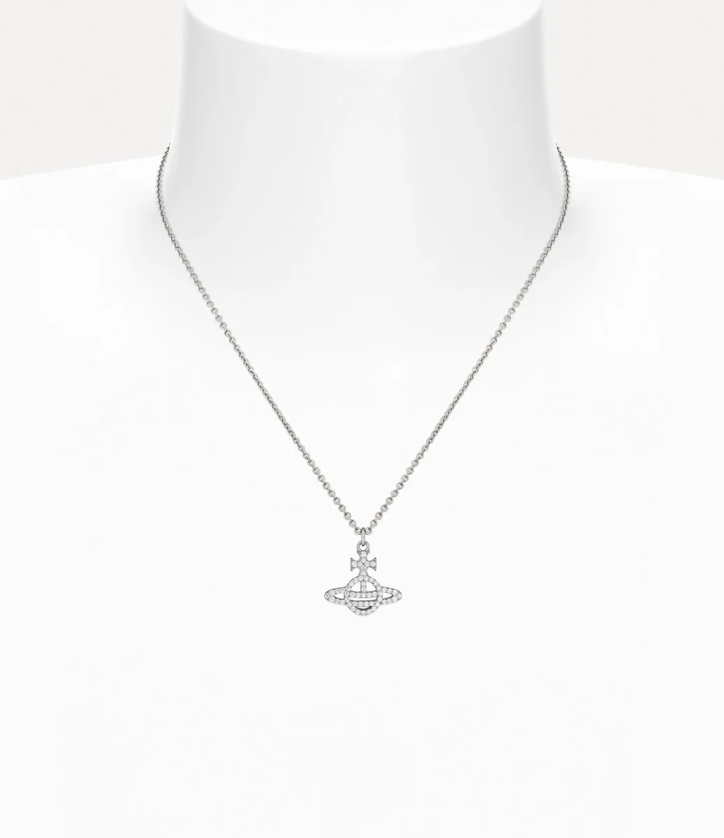 Náš přívěsek Calliope je charakteristickým stylem naší značky, s výraznou kovovou koulí uprostřed, inspirovanou motivem koule naší značky. Posázený třpytivými bílými krystaly, tento styl připomíná vizi Vivienne Westwoodové o přenesení tradice do budoucnosti.