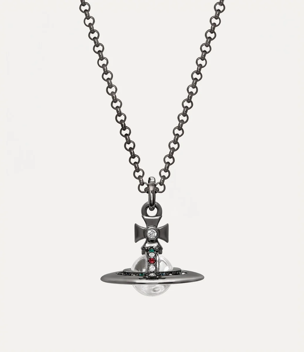Náhrdelník Vivienne Westwood New Tiny Orb Pendant v odstínech gunmetal má uprostřed kulatý skleněný drahokam, který doplňuje spolehlivá karabinová spona.
