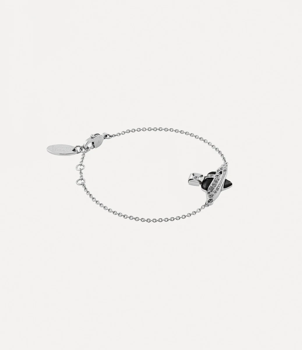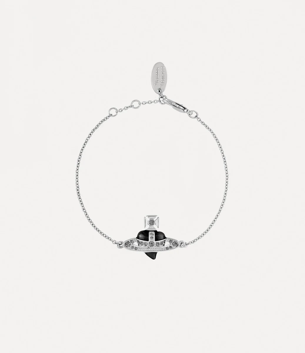 Náš nový náramek Diamante Heart se vyznačuje asymetrickým motivem srdce, který připomíná Vivienninu lásku k lidstvu a planetě. Design je odlitý ve stříbrném pokovení a zdobí ho ručně malované černé smaltované srdce s propracovanými detaily a třpytivými krystalovými ozdobami.
