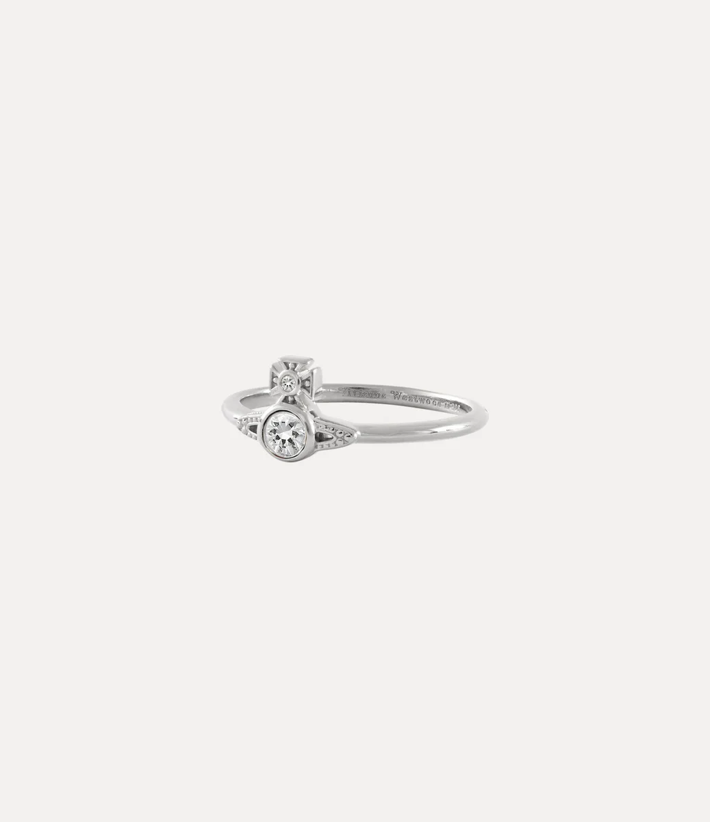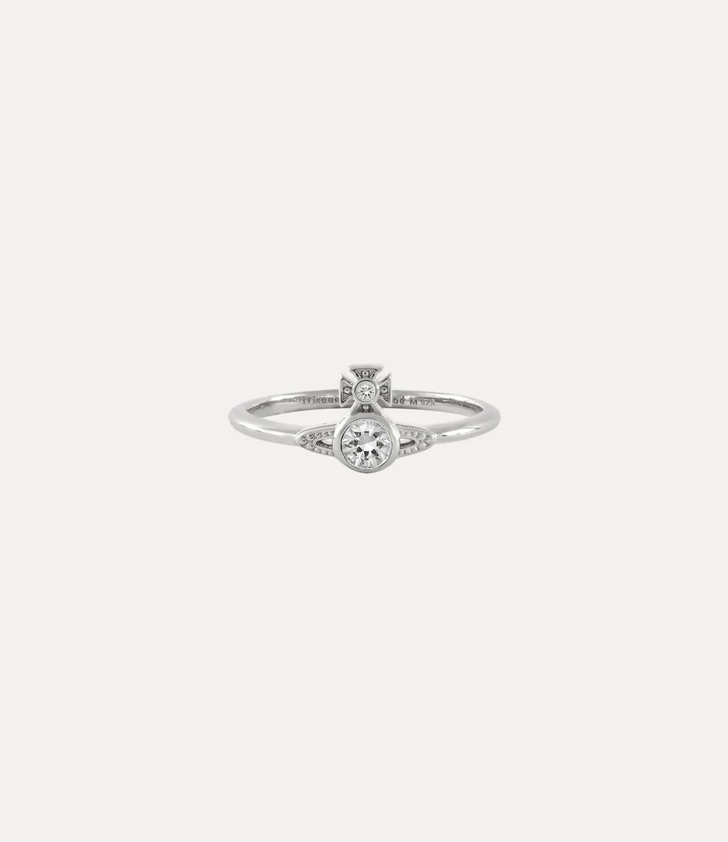Náš prsten London Orb z recyklovaného stříbra má jemný pásek, který se sbíhá v kulovitém středovém dílu – připomínajícím Vivienninu vizi přenesení tradice do budoucnosti. Prsten Saturn je zdobený detaily a doplněný bílými krystaly.