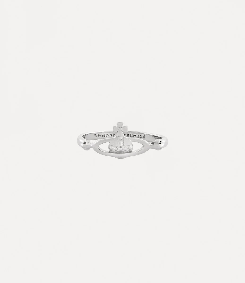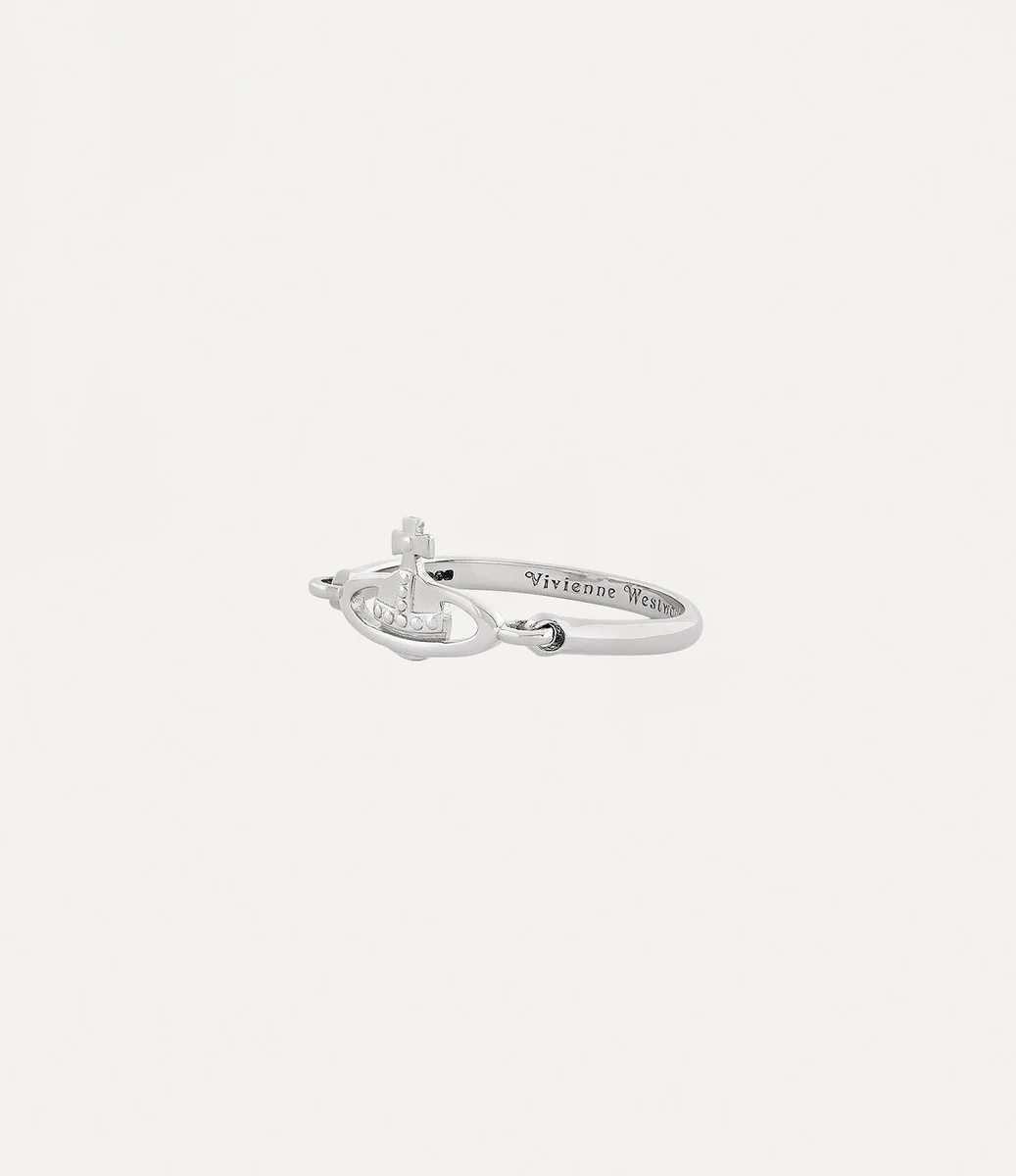Náš prsten Vendome z platinového stříbra má jemný prstencový design s vyřezávaným motivem koule na přední straně, který se může otáčet na pantu – symbolizuje vizi Vivienne, která přenáší tradici do budoucnosti. Na vnitřní straně je prsten opatřen podpisovým typografickým motivem naší značky.