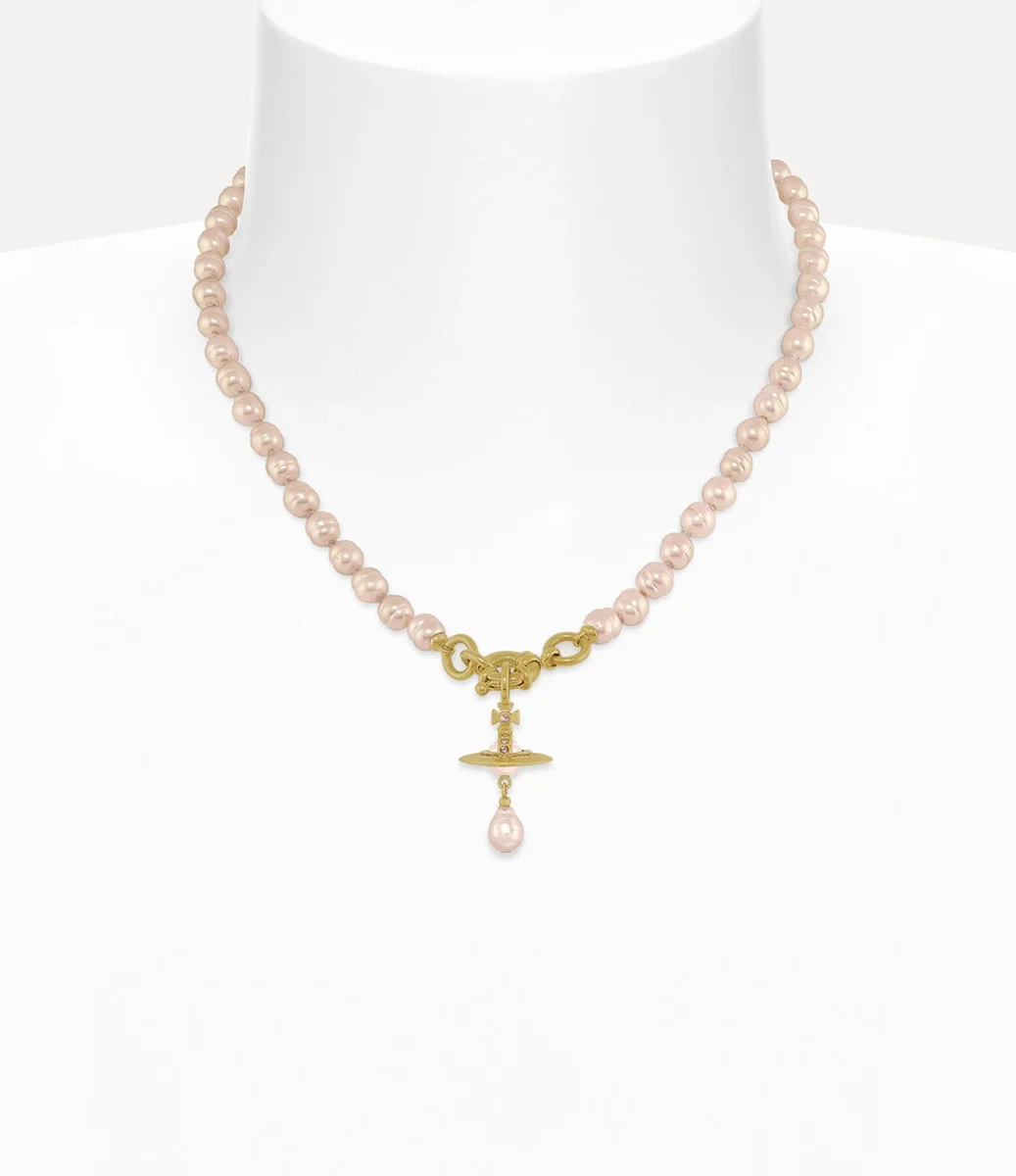 Perly zůstávají základním prvkem ikonografie značky a evokují pocit velkoleposti a luxusu. Náš náhrdelník Aleksa se vyznačuje řadou ručně vázaných perel na skleněné základně, doplněných motivem křišťálové koule a barokní perlou.
