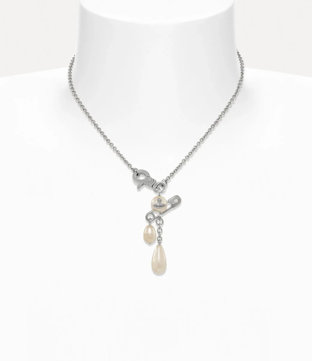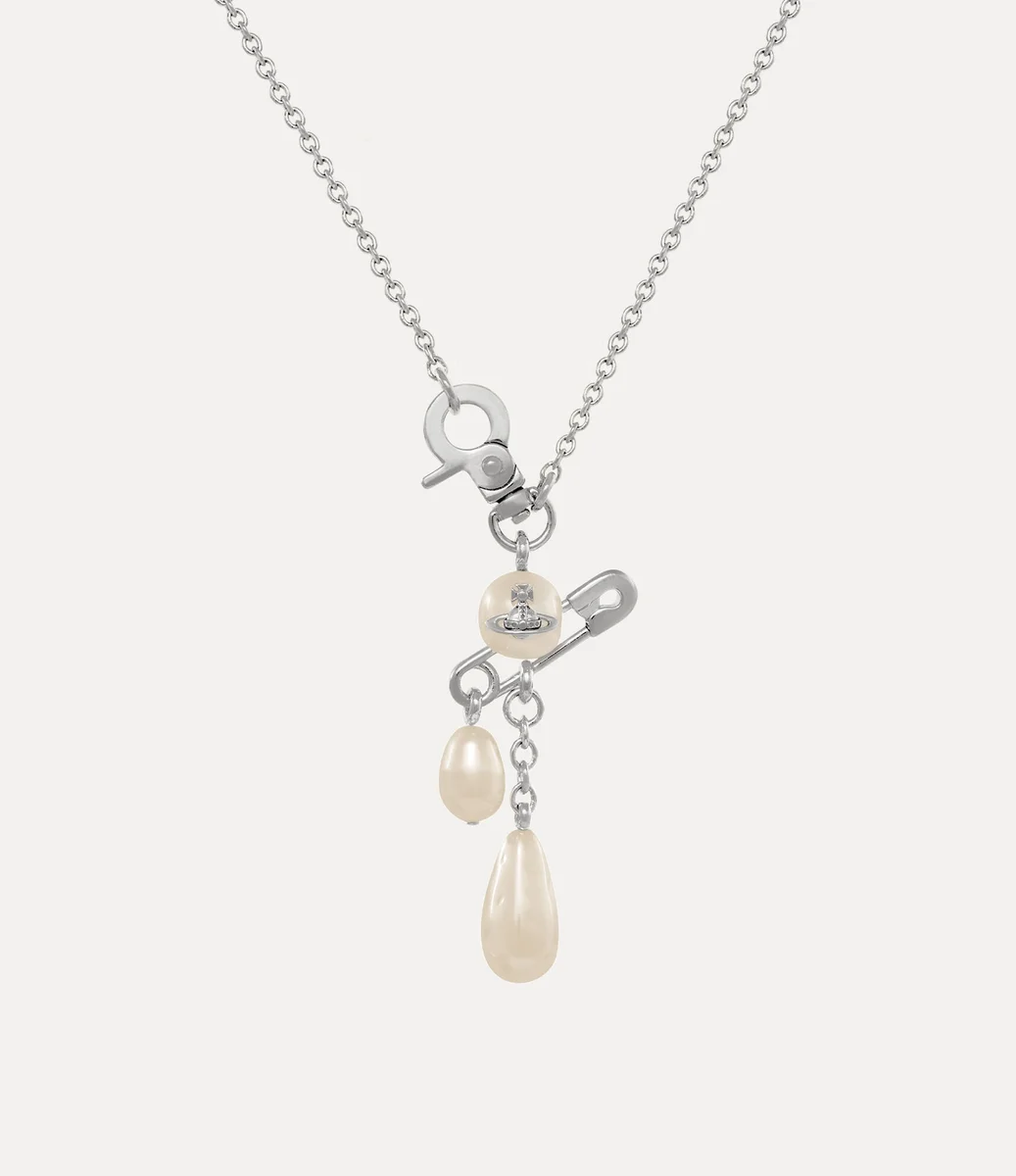 Náhrdelník Claude Small zdobí zaoblená perla s centrální koulí, doplněná charakteristickým detailem v podobě bezpečnostní spony – odkazem na punkem inspirovaný, nonkonformní styl Vivienne. Z přívěsku elegantně visí perla a jemné řetízkové detaily, které dodávají designu pohyb, zatímco spona inspirovaná hardwarem umožňuje snadné zapínání.