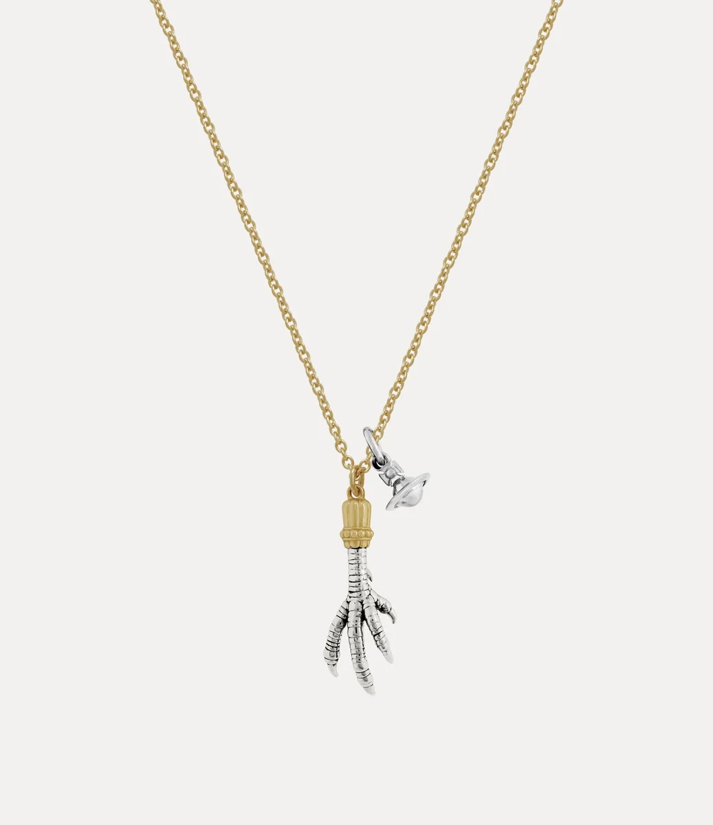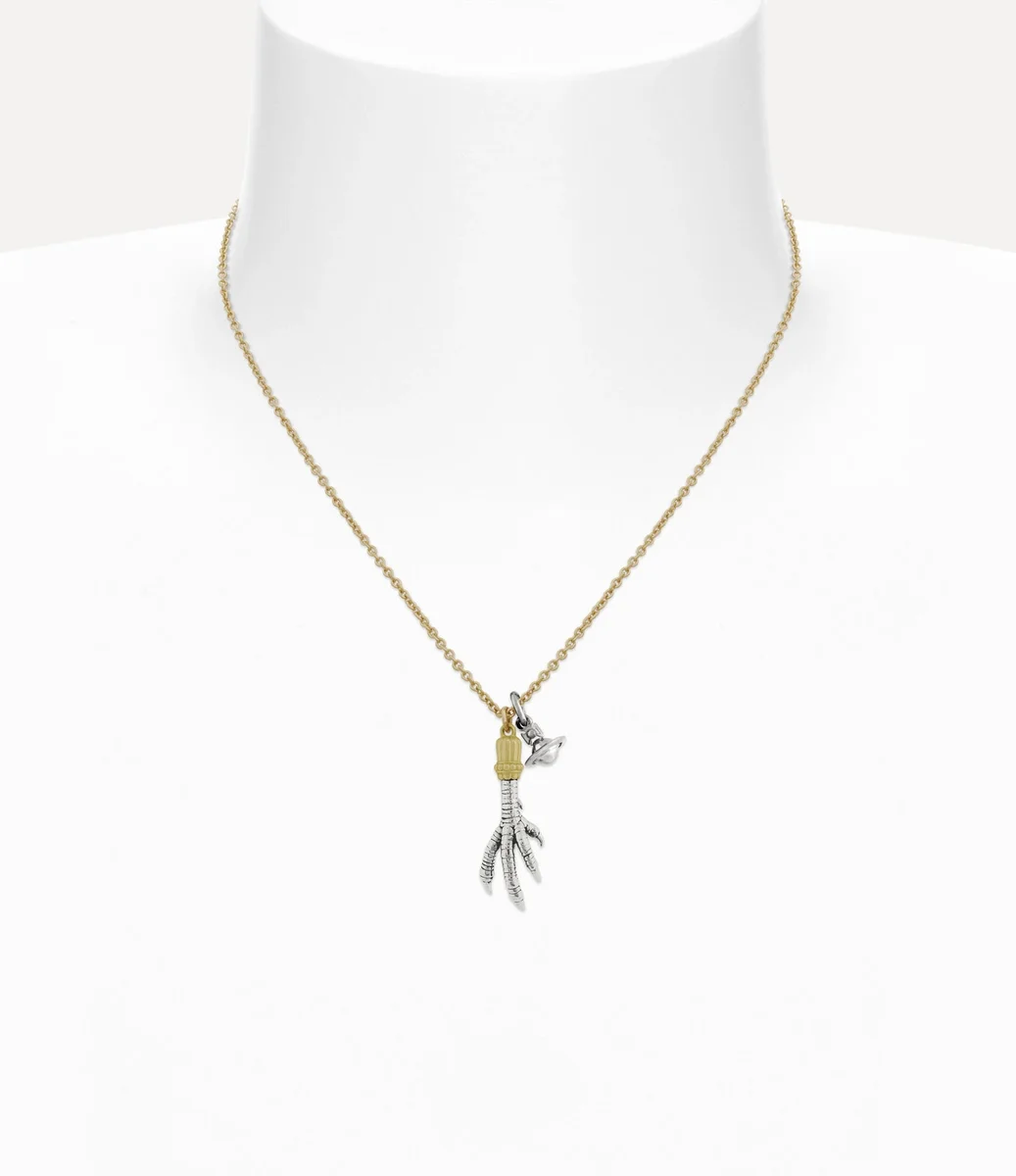 Náhrdelník Joselita Pendant zdobí výrazný motiv kuřecí nohy, symbol štěstí, který je hitem této sezóny. Přívěsek je zdoben černou patinou, která zdůrazňuje jeho texturu, a má povrchovou úpravu z kombinace kovů s leštěným pokovením a visící koulí, která symbolizuje étos značky, jenž spočívá v přenášení minulosti do budoucnosti.