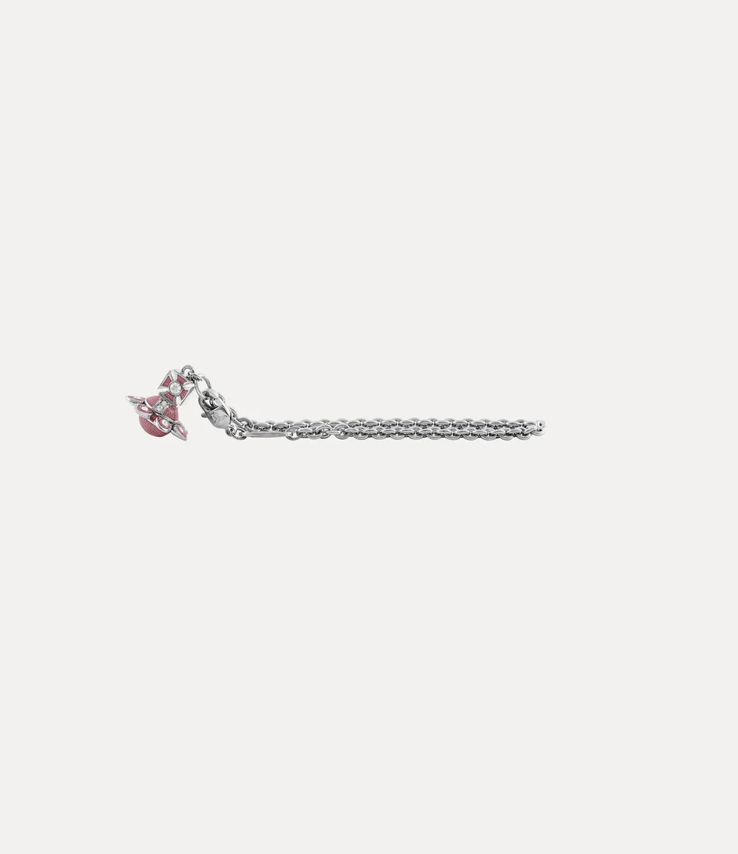 Náš stříbrný náramek Capucine přetváří tradiční motiv koule značky s jemnými květinovými detaily podél prstenu Saturn. Design je doplněn jemnou rýhovanou texturou uprostřed koule a křížem nahoře, ručně malovaným světle růžovým průsvitným smaltem.