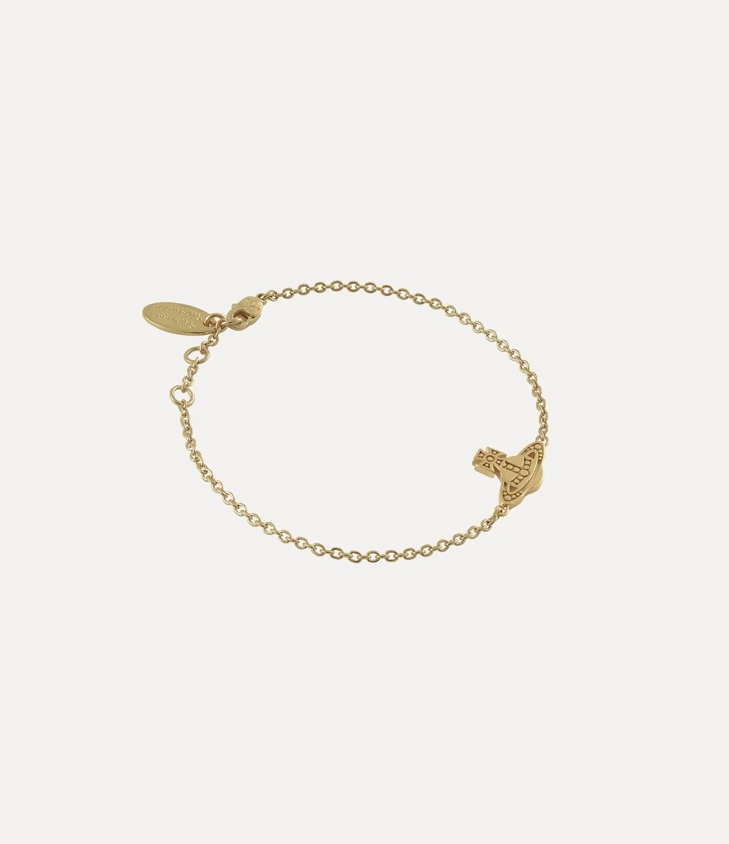 Náš náramek Marinetta je vyroben ze zlaceného kovu a uprostřed zdobí charakteristický motiv koule. Design se vyznačuje jemně lisovanou texturou připomínající korálky, která mu dodává ručně vyrobený vzhled, zatímco ryté detaily zdůrazňují kontury kříže a prstenu Saturn.