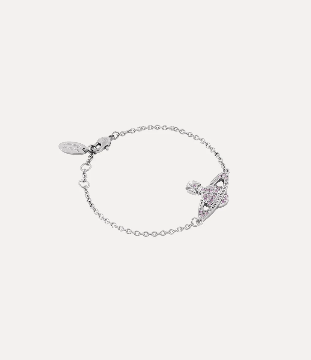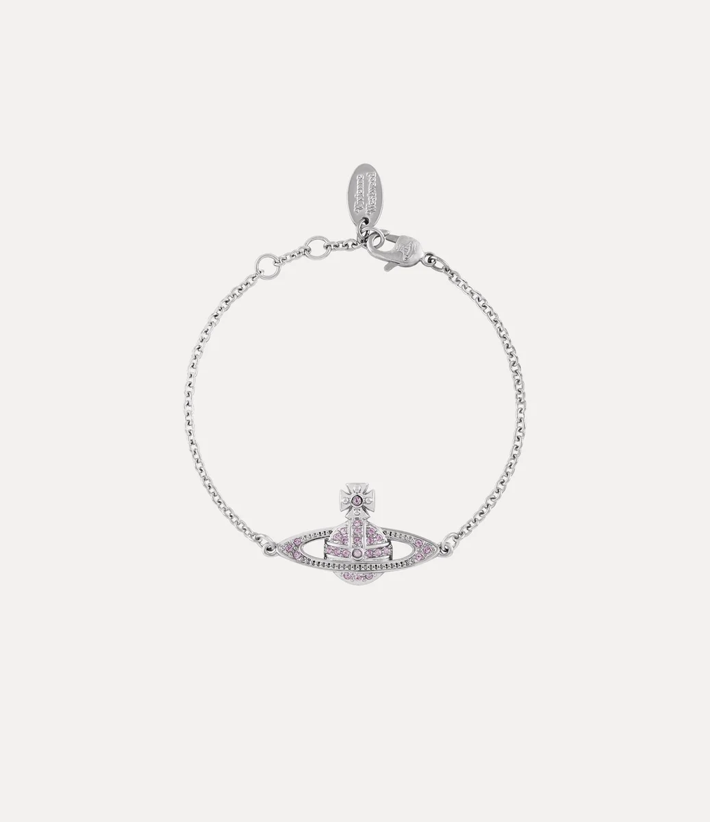 Náramek Vivienne Westwood Mini Bas Relief Chain se vyznačuje třpytivými fialovými křišťálovými detaily a leštěným stříbrným pokovením.