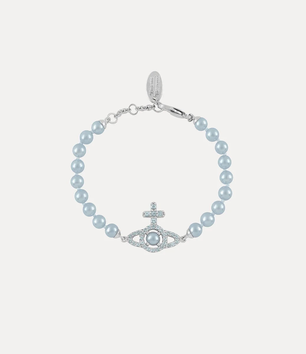 Náramek Vivienne Westwood Olympia Pearl zdobí řada skleněných perel se stříbrnou koulí uprostřed, která je inspirována charakteristickým motivem značky.
