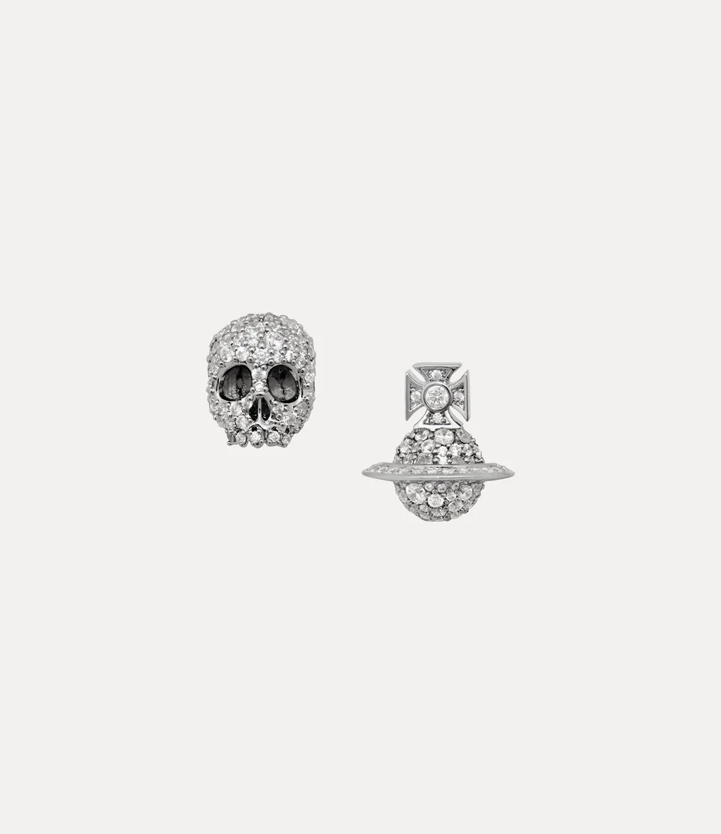 Naše náušnice Circe Stud odhalují charakteristickou ikonografii značky prostřednictvím asymetrického designu, který kombinuje stříbrné motivy lebky a koule. Náušnice jsou posázeny čirými krystaly v pavé pro zářivý povrch a doplněny našimi charakteristickými zapínáními ve tvaru motýla.