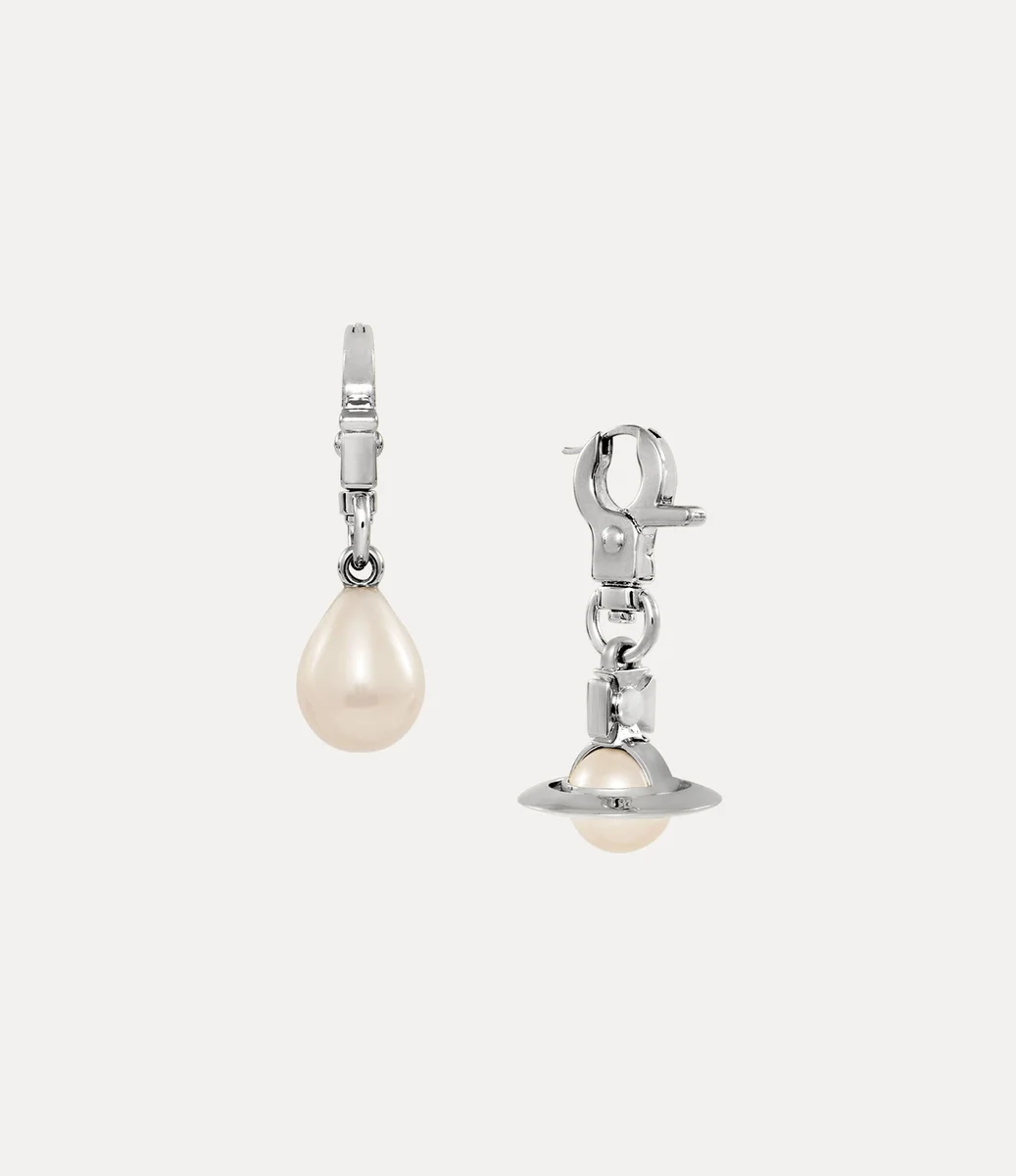 Naše náušnice Claude mají asymetrický design, který je umocněn stříbrným pokovením. Jsou zdobeny celokovovou visící koulí, která symbolizuje vizi Vivienne spojit tradici s budoucností, a jsou dále zdobeny klasickou perlou, zavěšenou na výrazném otočném zapínání inspirovaném kovovým kováním.
