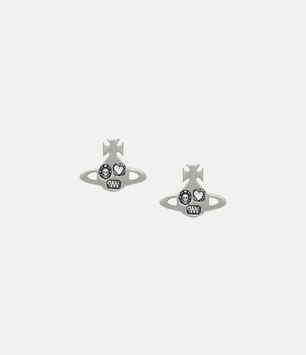 Naše náušnice Crispin čerpají inspiraci z tradičního puncování a v jejich středu se nachází složitě detailní ikonografie značky, jako by byla do designu vyražena. Kousek je vyřezán do siluety koule a dále obohacen povrchovou úpravou v antickém stylu.