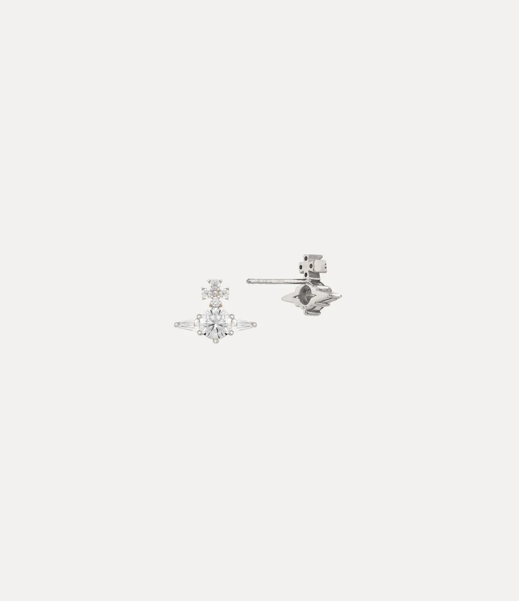 Naše náušnice Ofelia mají platinovou siluetu koule, inspirovanou charakteristickým motivem naší značky. Design, posázený třpytivými kulatými a zúženými krystaly zirkonu, odráží vizi Vivienne, která přenáší tradici do budoucnosti.
