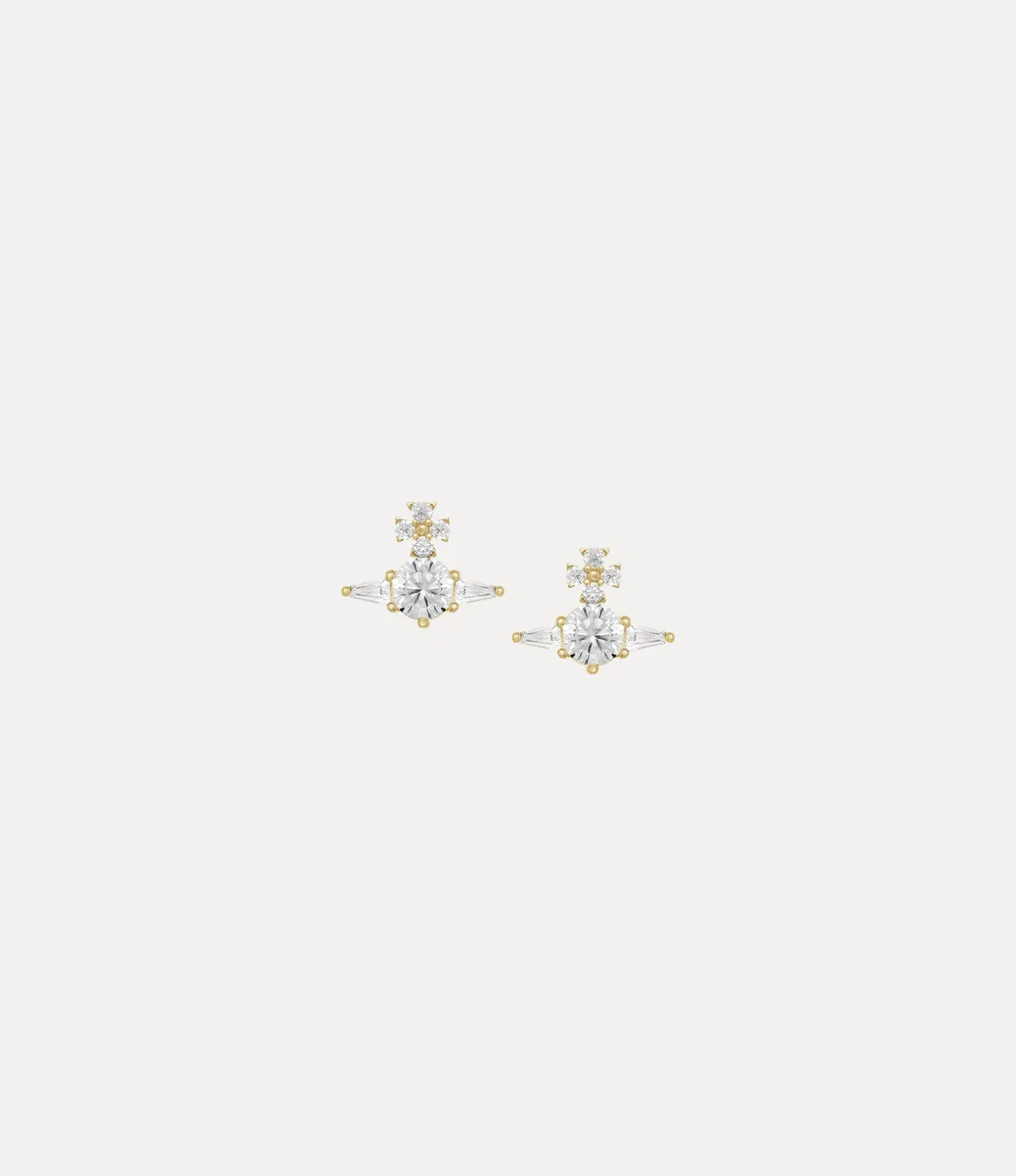 Naše náušnice Ofelia mají zlatý kulatý tvar, inspirovaný charakteristickým motivem naší značky. Jsou posázeny třpytivými kulatými a zúženými krystaly zirkonu a jejich design odráží vizi Vivienne, která přenáší tradici do budoucnosti.
