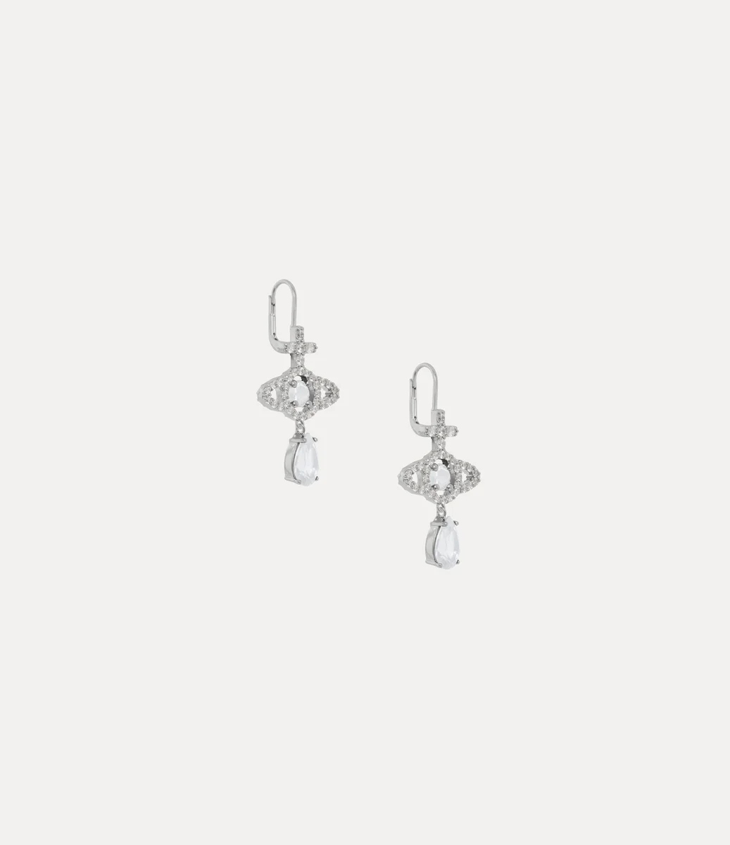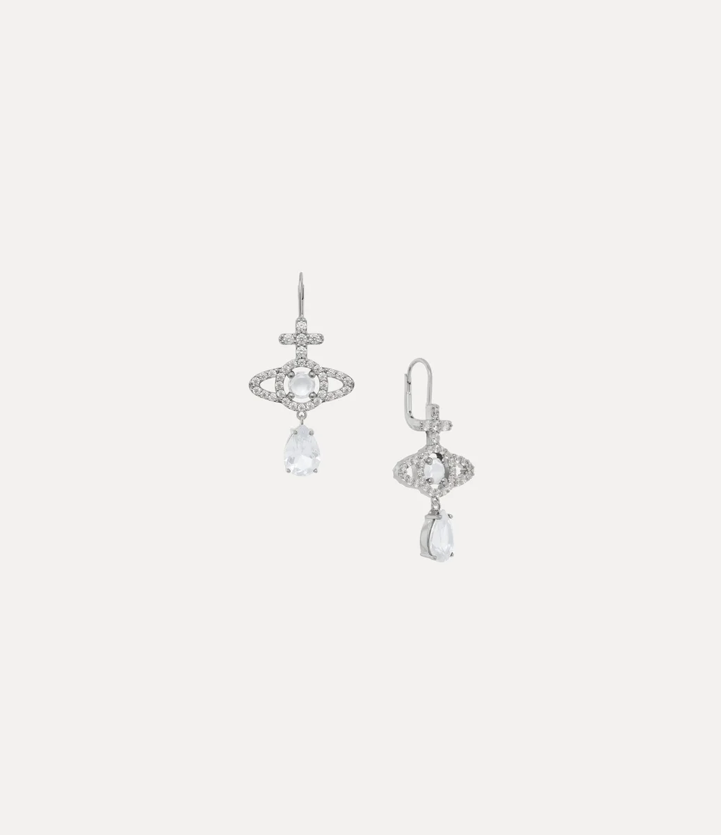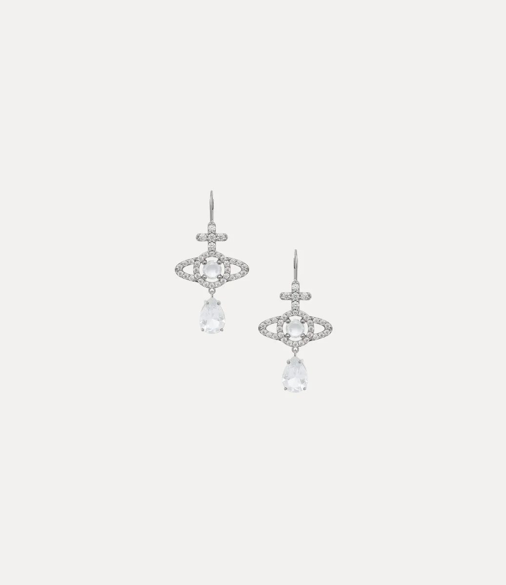 Náušnice Olympia Drop přinášejí nové pojetí charakteristického kulatého tvaru značky s visícím krystalem ve tvaru slzy. Design se vyznačuje bílým centrálním kamenem obklopeným třpytivými krystaly v pavé zasazení a povrchovou úpravou ve stříbrném odstínu.