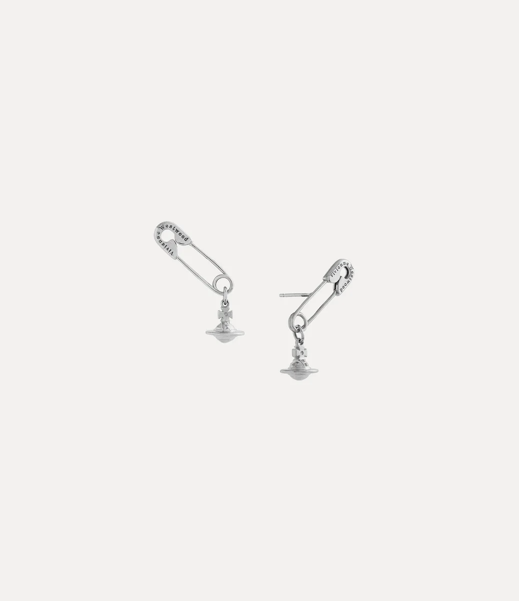 Motiv bezpečnostní sponky je nezbytnou součástí ikonografie značky a evokuje charakteristickou punkovou estetiku Vivienne. Silueta náušnic Safety Pin této sezóny oživuje tento motiv a doplňuje jej klasickou visící koulí, která je synonymem pro vizi Vivienne uvést tradici do budoucnosti.
