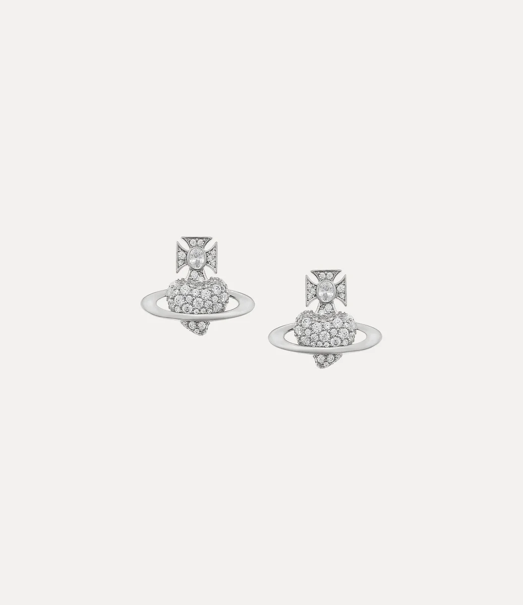 Náušnice Valentine’s Agnatha mají asymetrický tvar srdce, symbol Vivienniny lásky k lidstvu a planetě. Šperk je zdobený třpytivými krystaly v bílých tónech, leštěným stříbrným pokovením a ručně malovanými detaily z bílého smaltu uvnitř Saturnova nebeského prstence.