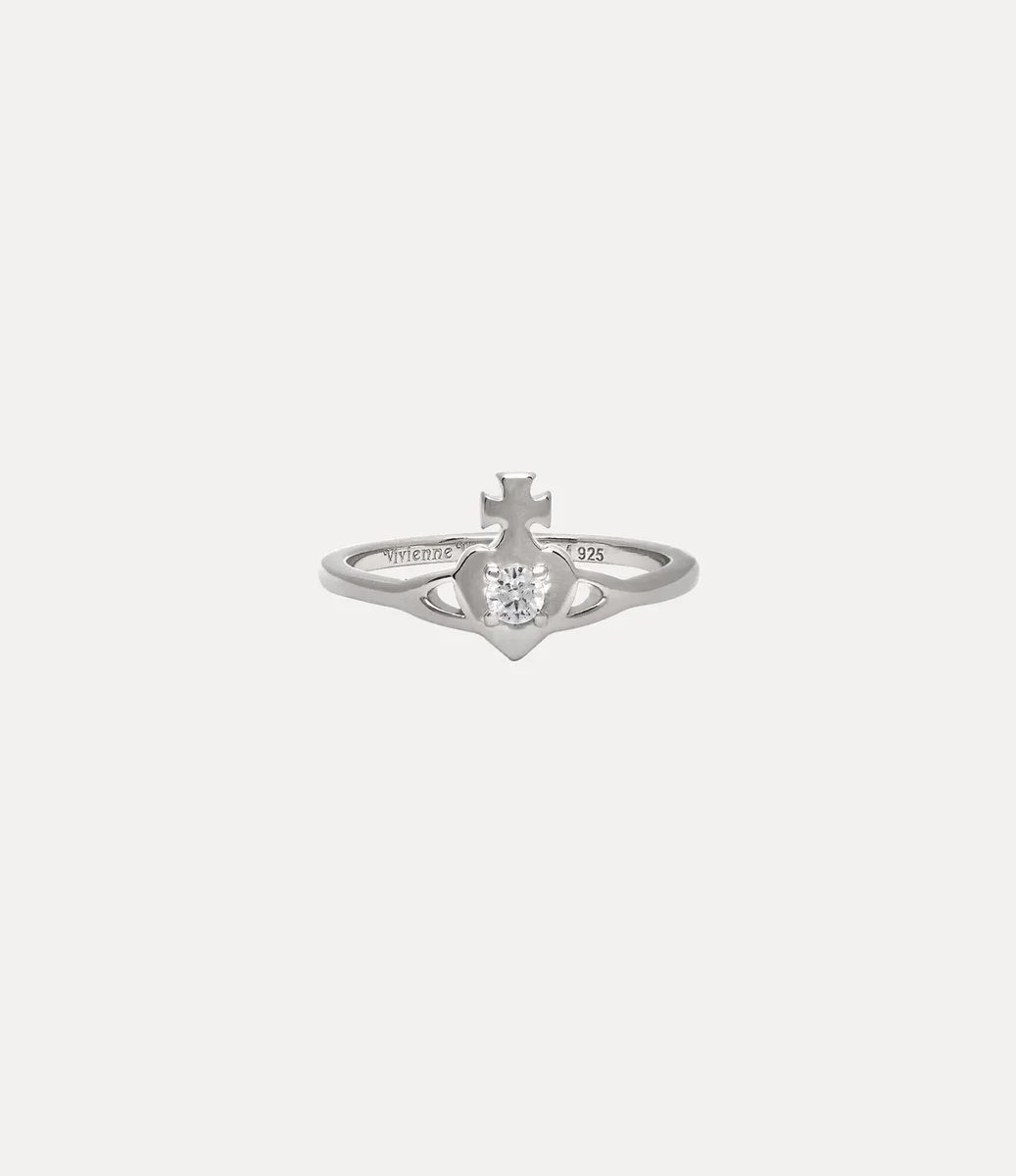 Tvar srdce zůstává klasickým prvkem ikonografie značky a připomíná Vivienninu lásku k lidstvu a planetě. Náš prsten Noella oživuje tento motiv a je doplněn leštěným platinovým pokovením a ozdobami z bílých krystalů.