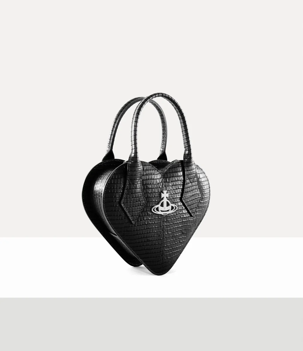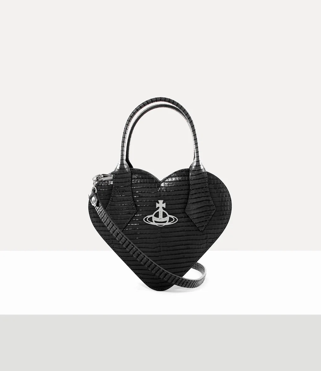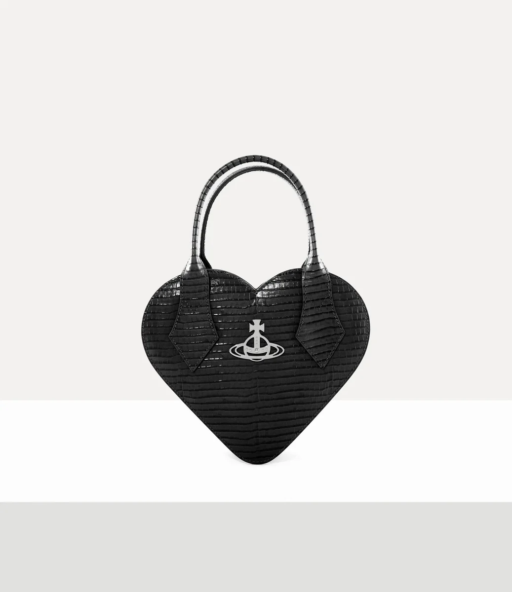 Naše taška Josephine Heart Crossbody přináší nové pojetí charakteristického motivu srdce, který připomíná Viviennin vztah k lidstvu a planetě. Taška je vyrobena z kůže s reliéfem imitujícím krokodýlí kůži a má elegantní design s jednou přihrádkou a zapínáním na zip, zdobený naším klasickým motivem „Line Orb“.