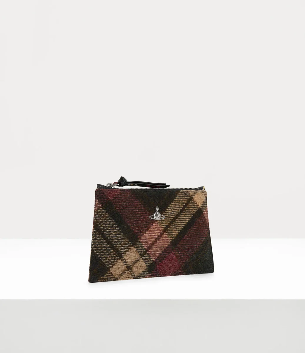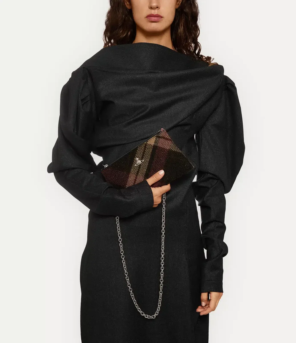 Naše malá plochá kabelka na zip je vyrobena z archivní látky Harris Tweed, ručně tkané obyvateli skotských Vnějších Hebrid. Kabelka je navržena s odnímatelným řetízkovým popruhem a po otevření odhalí naši charakteristickou podšívku s motivem britské vlajky, zatímco přední stranu zdobí leštěná koule.p>