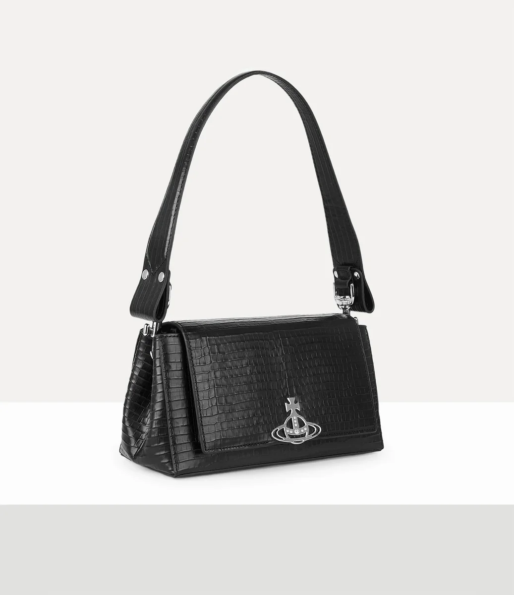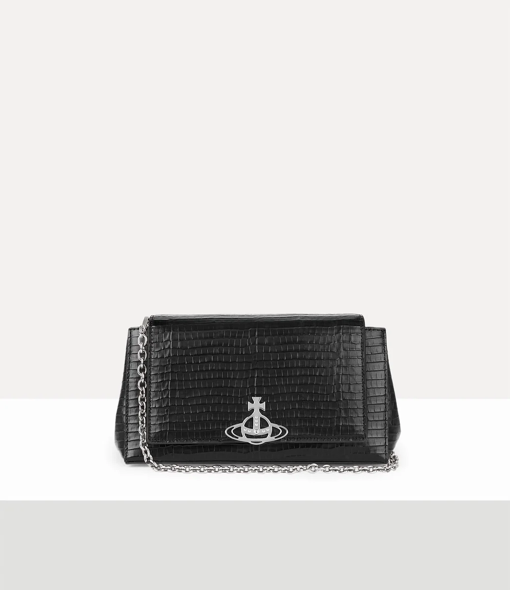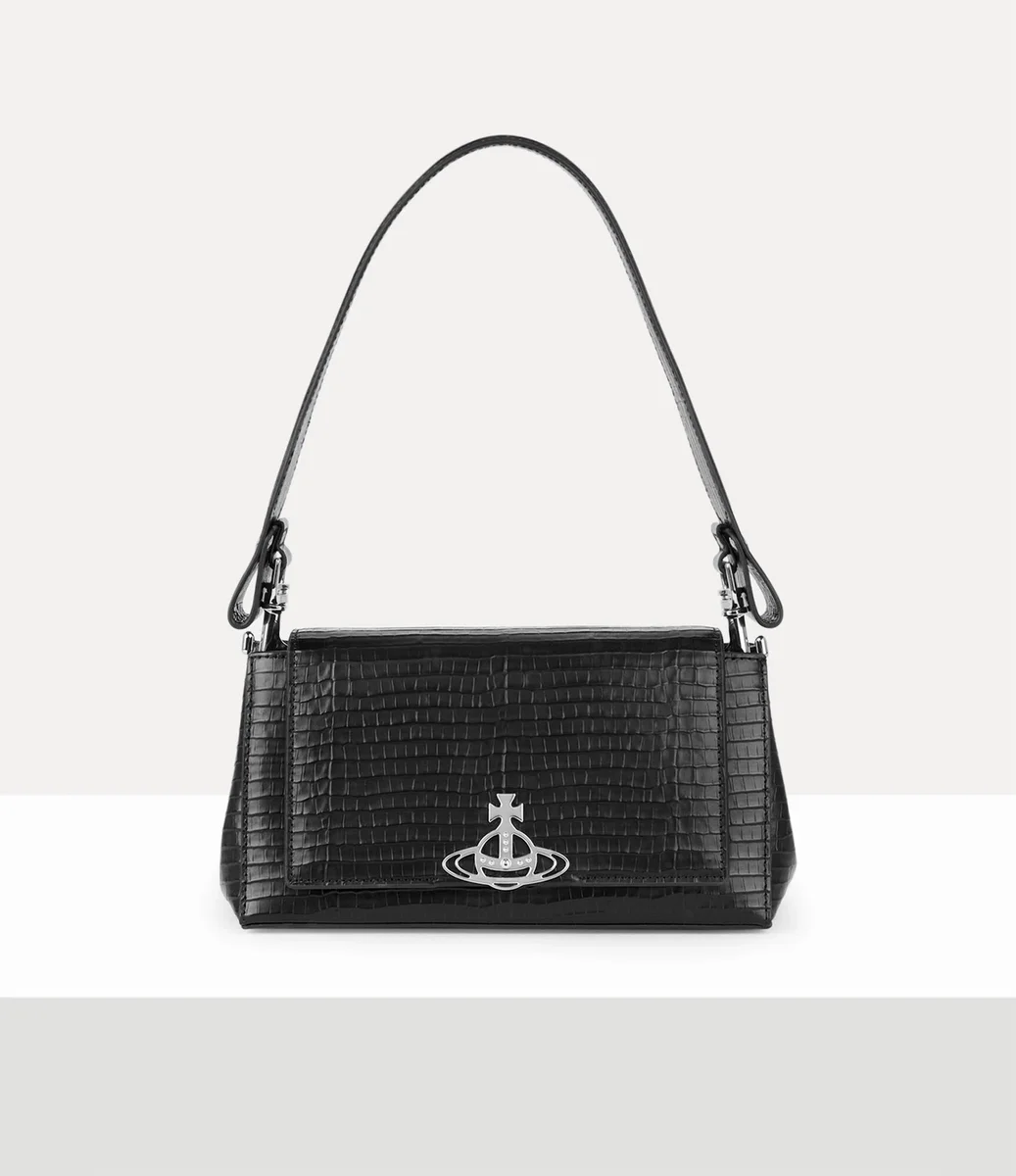 Naše kabelka Hazel Medium je vyrobena z kůže a v této sezóně je zdobena raženým vzorem „Mini“ s efektem krokodýlí kůže. Kabelka je podšita jemnou moaré látkou a na přední straně zdobí charakteristický motiv „Line Orb“, který symbolizuje tradici, obklopený nebeskými prstenci Saturnu, symbolizujícími budoucnost.