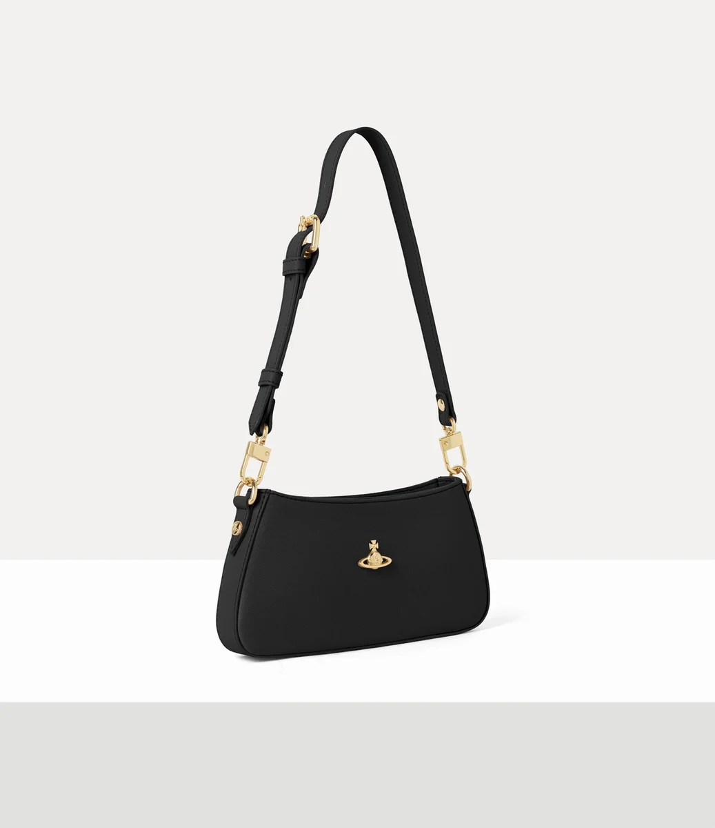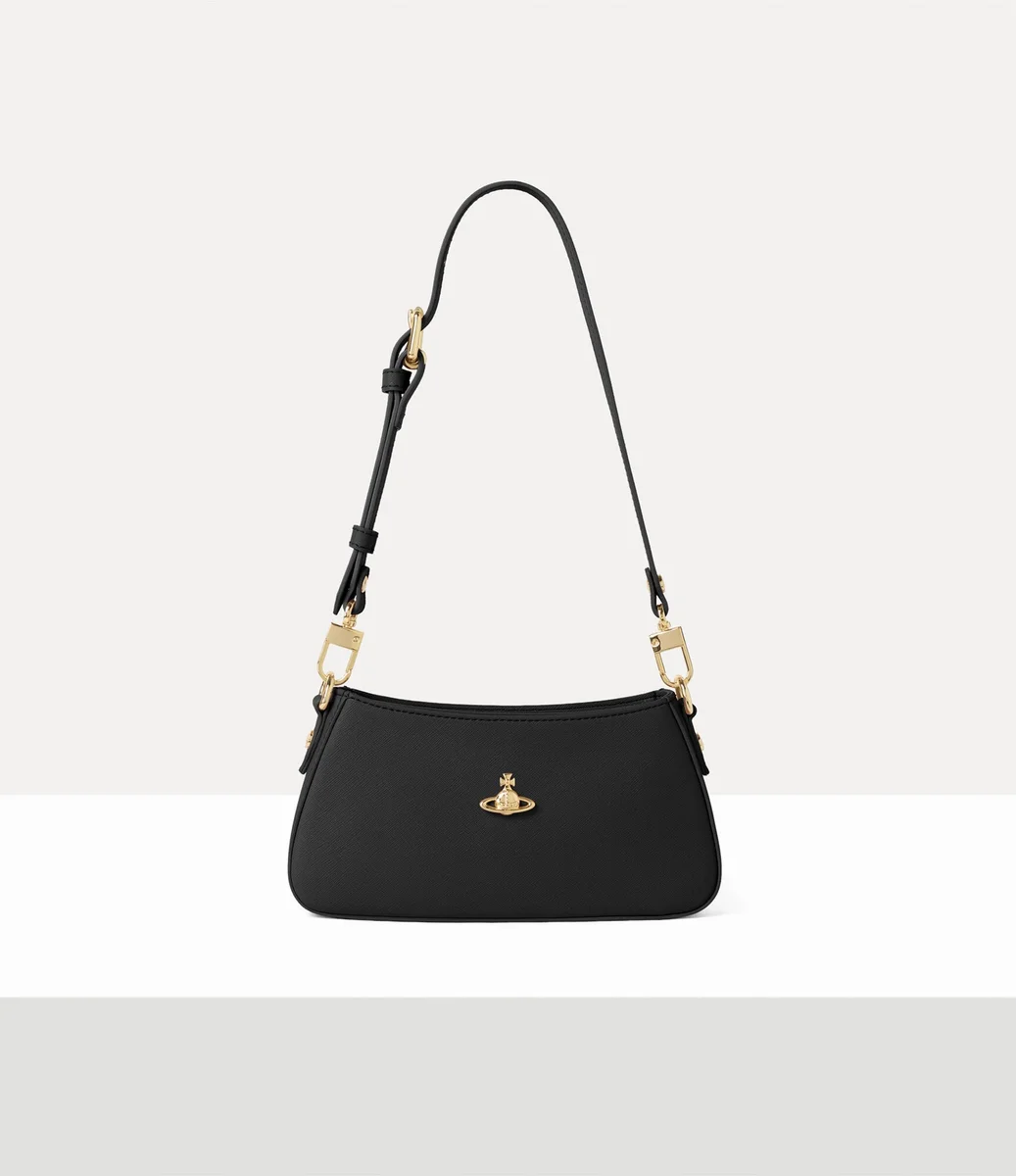 Taška na telefon Vivienne Westwood Tasha Shoulder z PU kůže má povrch s reliéfem saffiano a je doplněna charakteristickými mosaznými kováními značky.