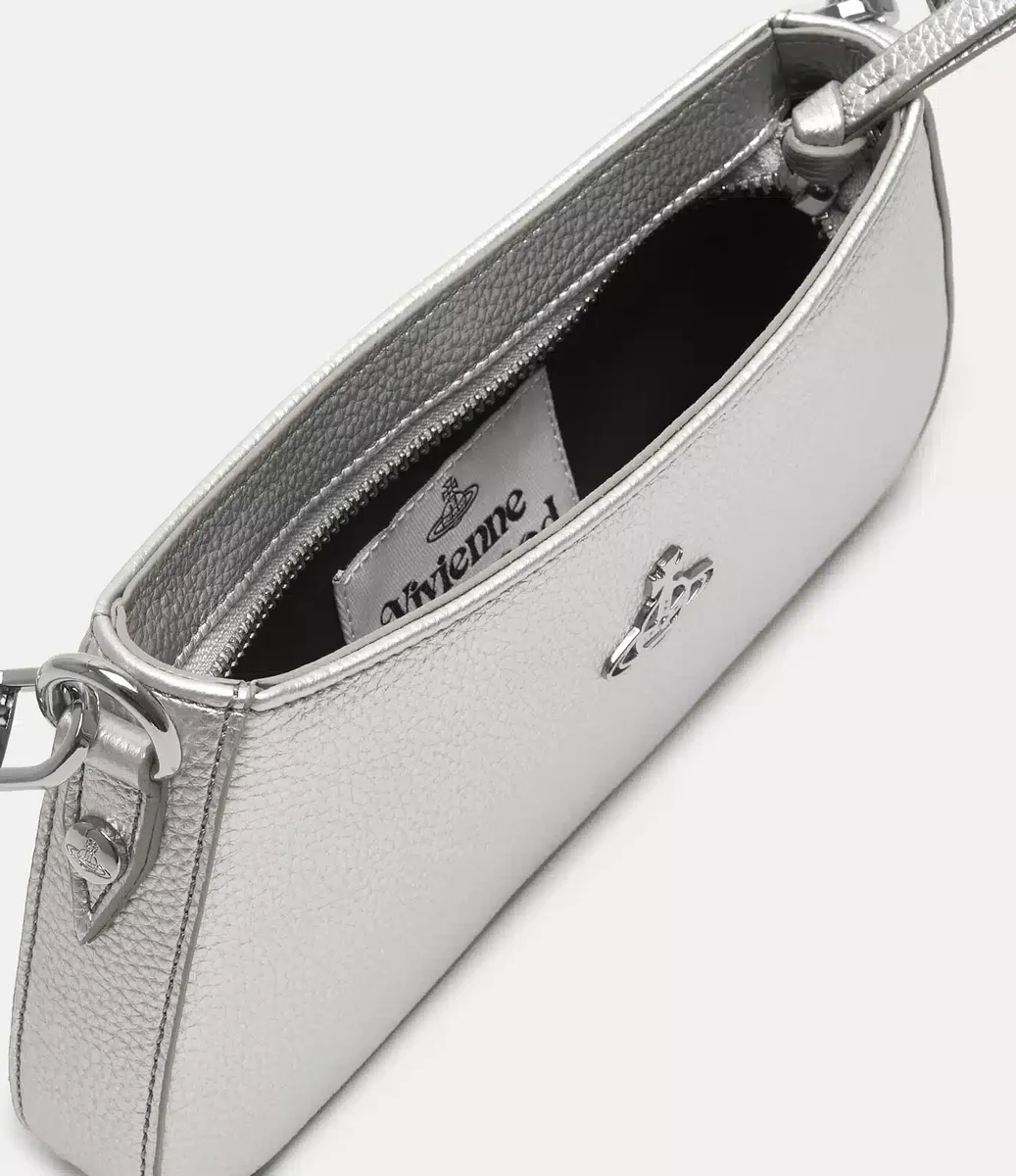 Taška na rameno Vivienne Westwood Tasha z PU kůže má kovový povrch a je doplněna charakteristickými mosaznými kováními značky.