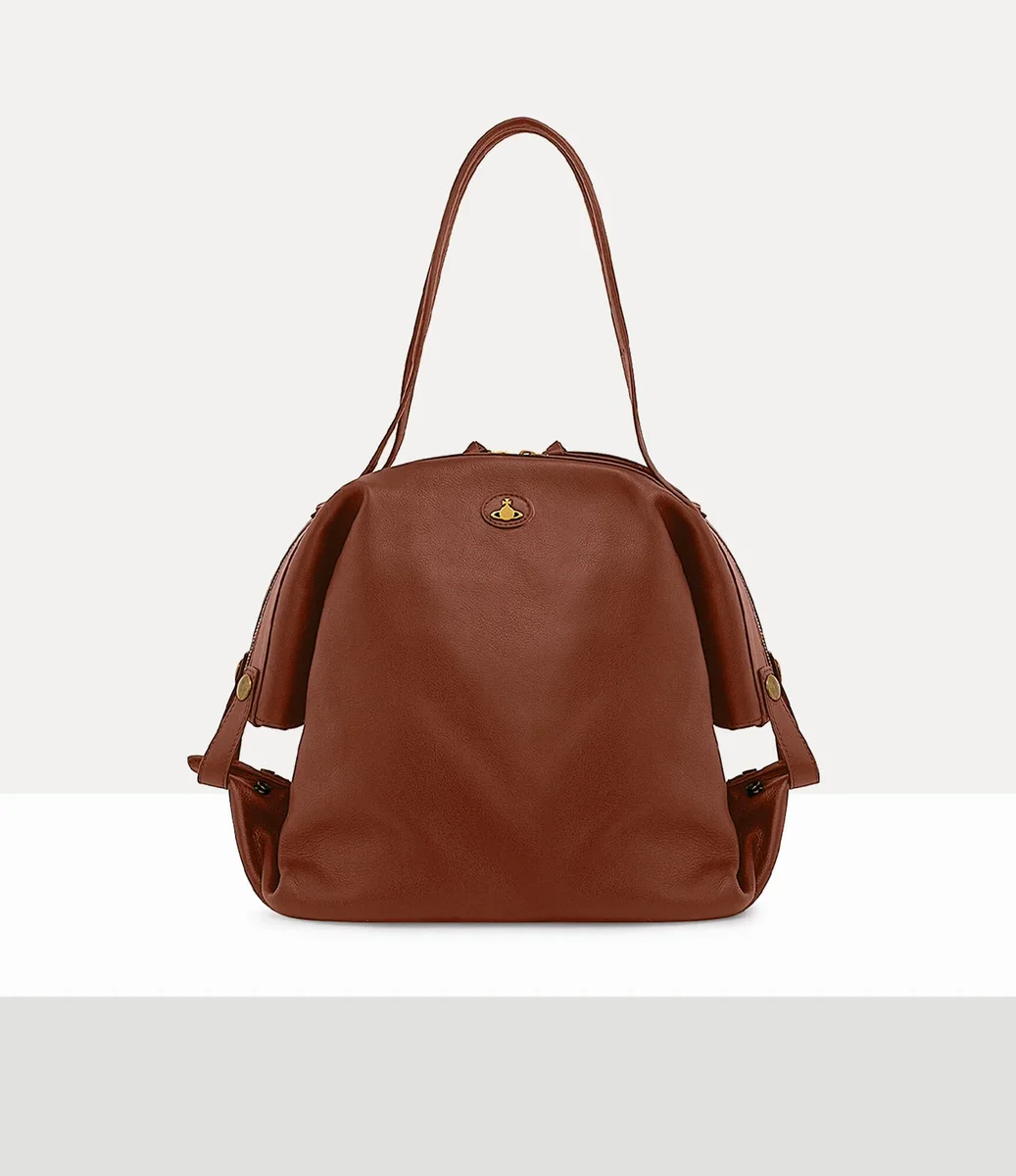 Velká kožená taška Vivienne Westwood Mara se vyznačuje měkkými tvary a leštěnými kovovými detaily.