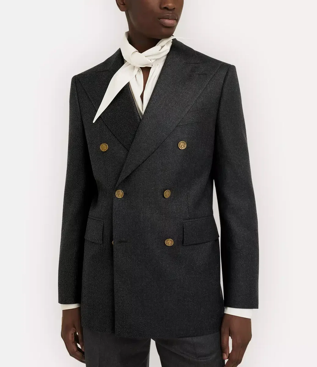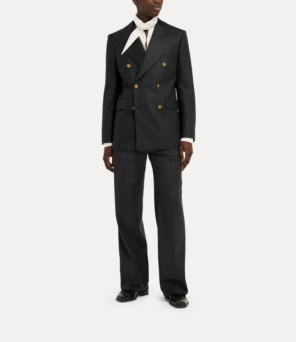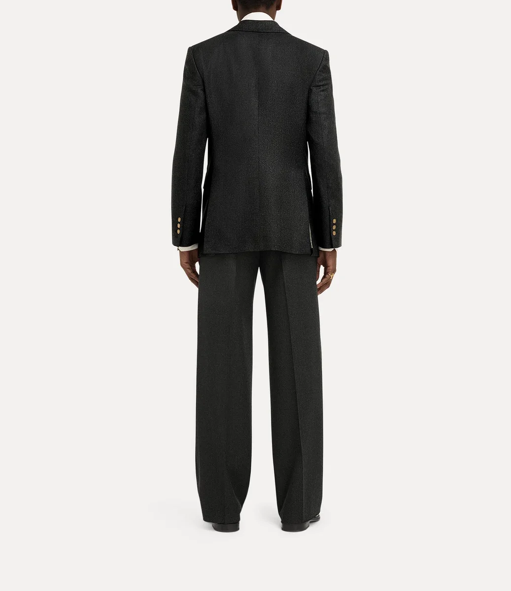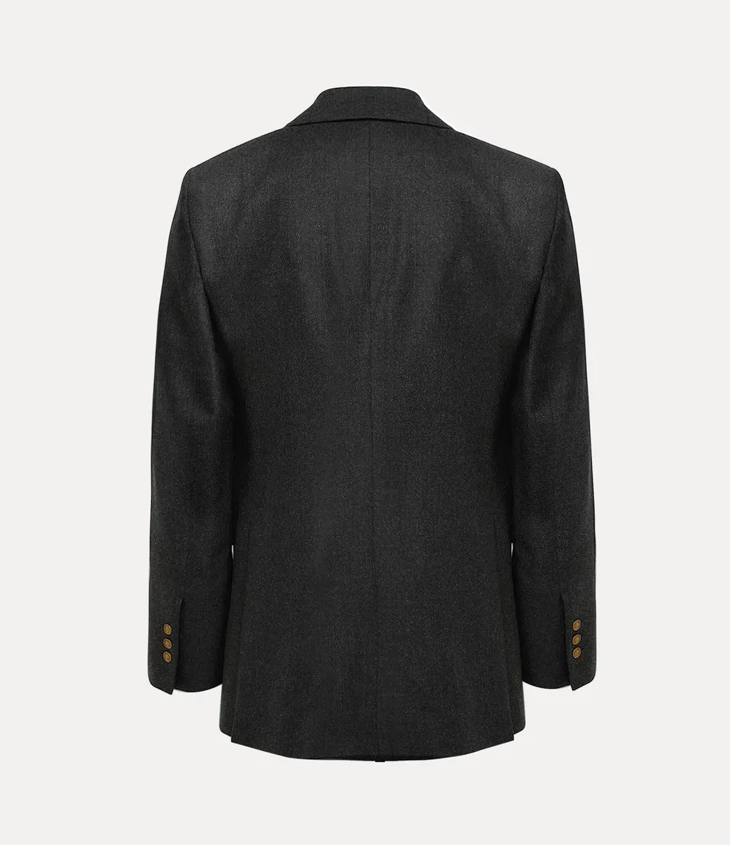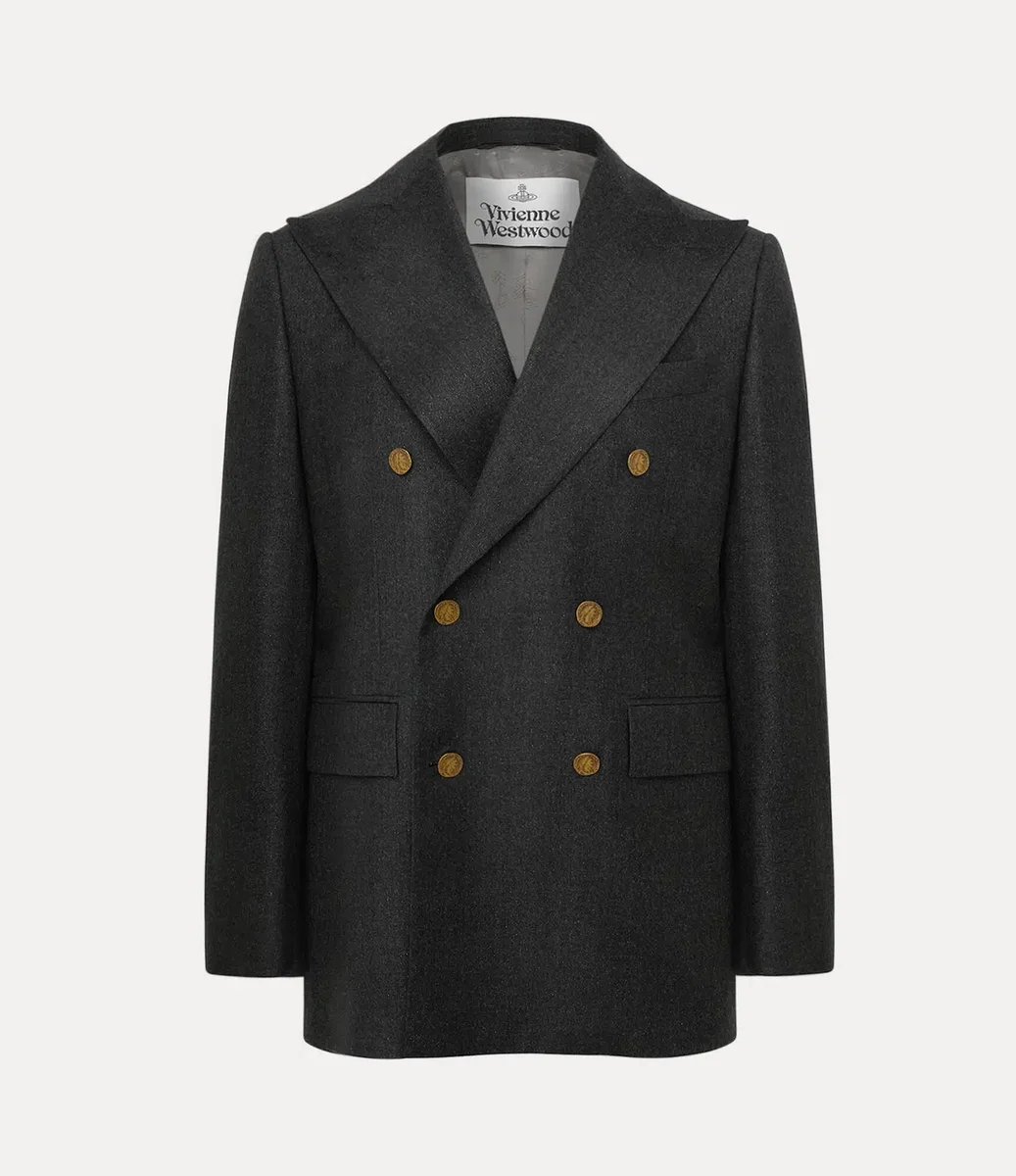 Naše bunda Captain má vlněný profil a je jemně tkaná s kovovým kartáčovaným povrchem. Silueta s ostrými klopami spadá do čistého lemu se zadními rozparky a je doplněna naší vnitřní podšívkou „Tossed Orb“ – synonymem pro vizi Vivienne Westwoodové, která chce tradici přenést do budoucnosti.